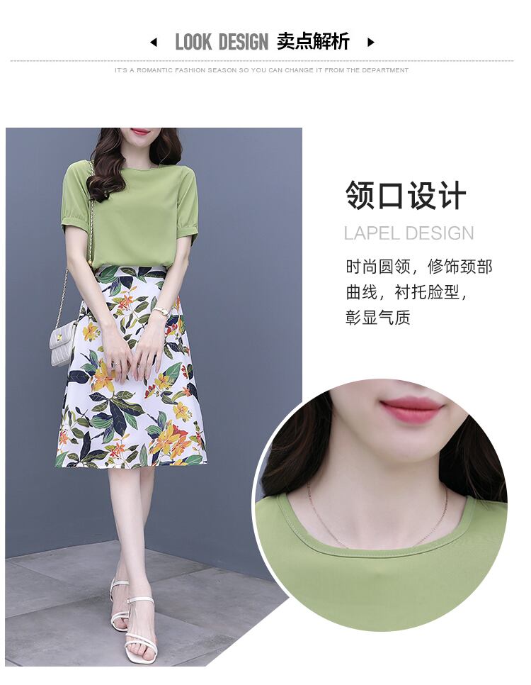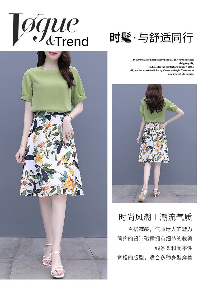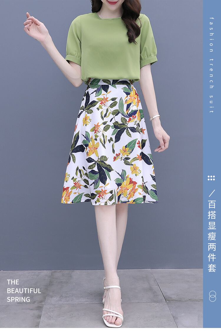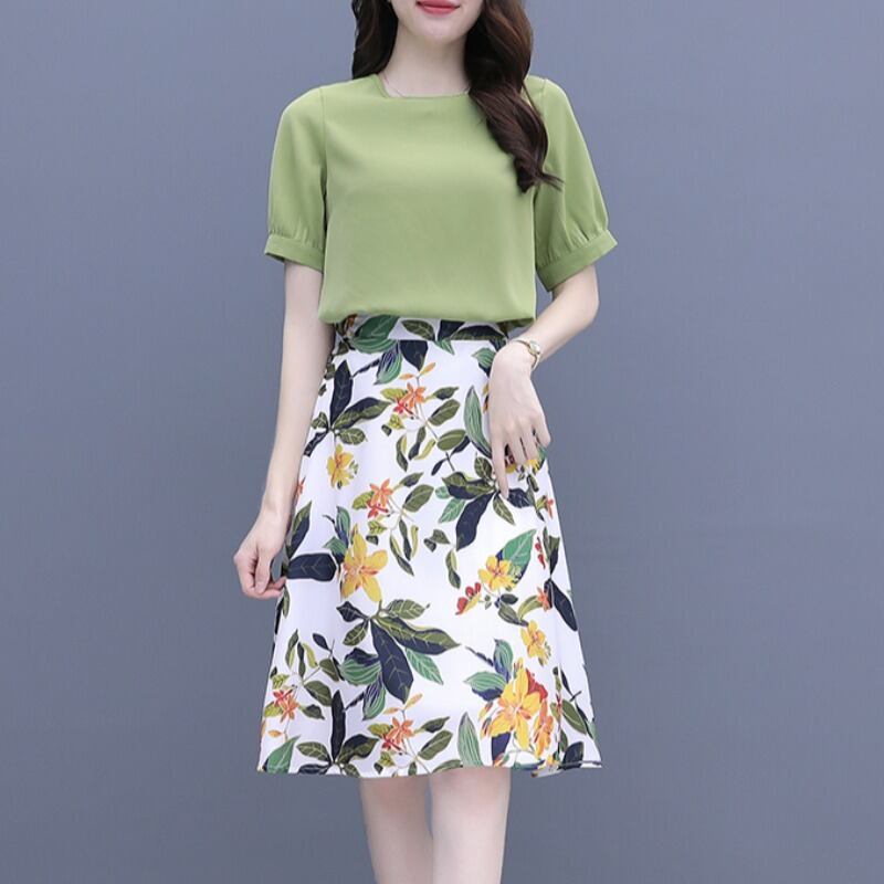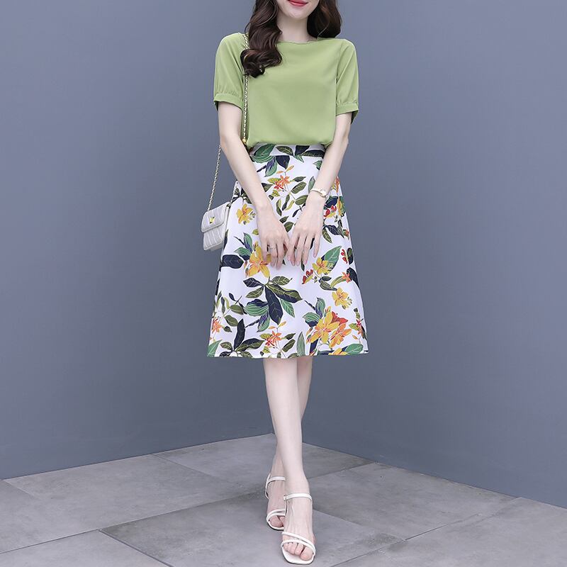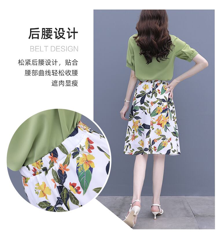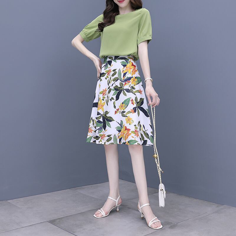 スカート グリーンドレス セット サマーシフォンフローラル 大きめサイズ 夏物 花柄 muto56348531784