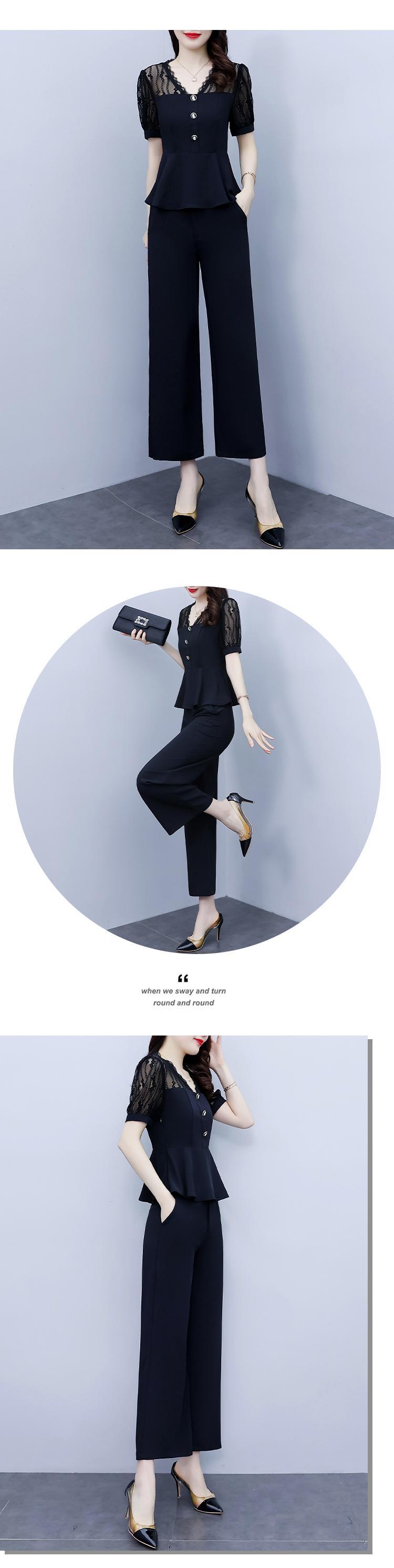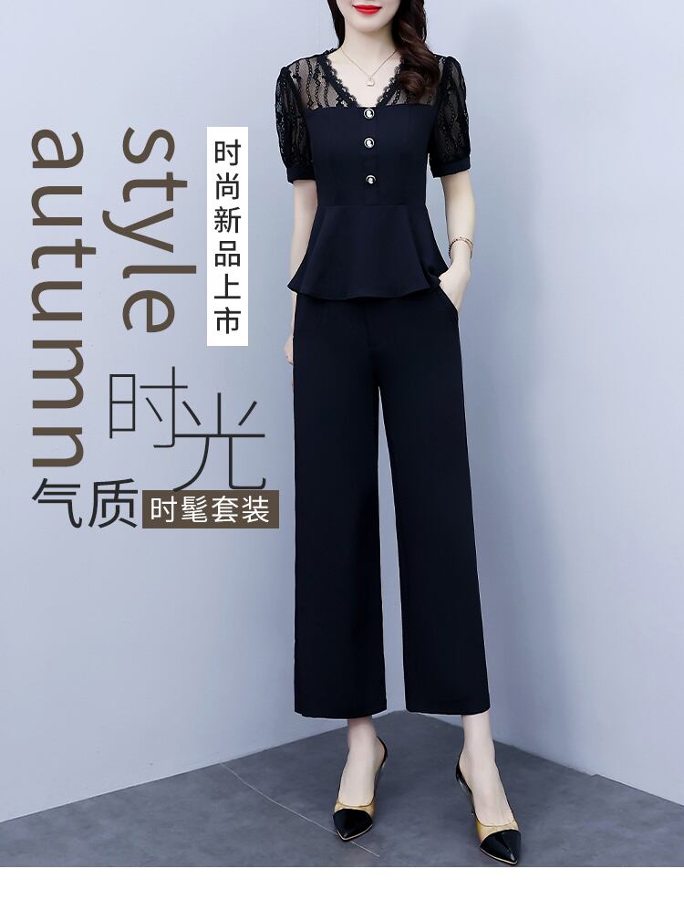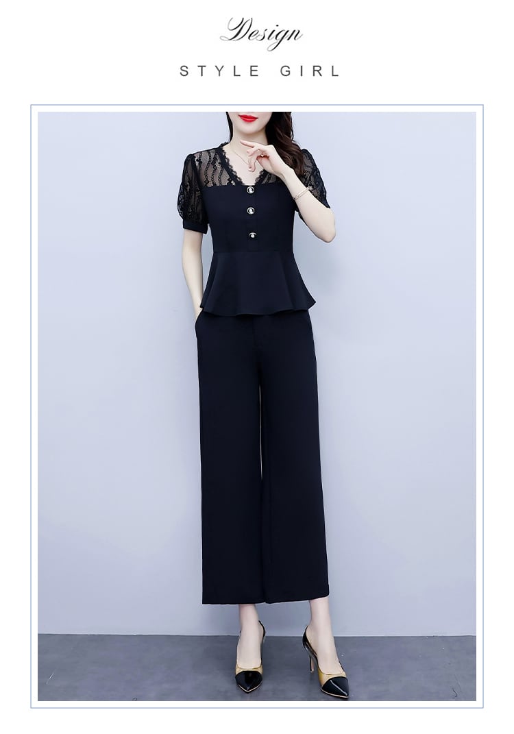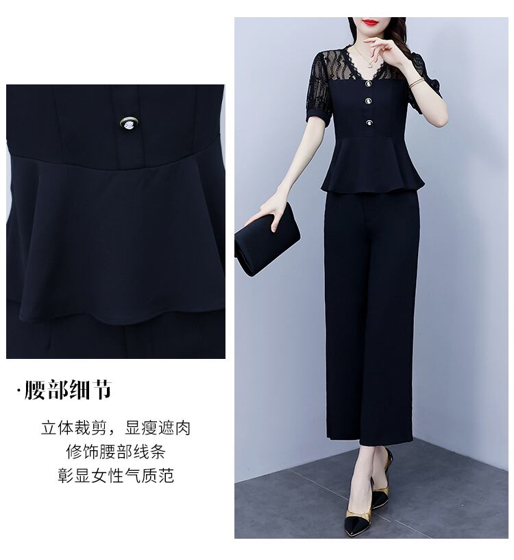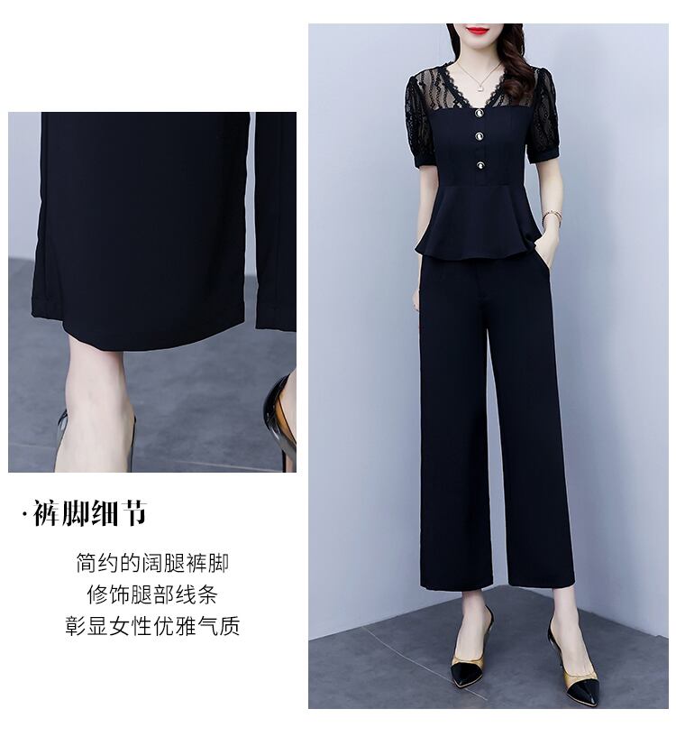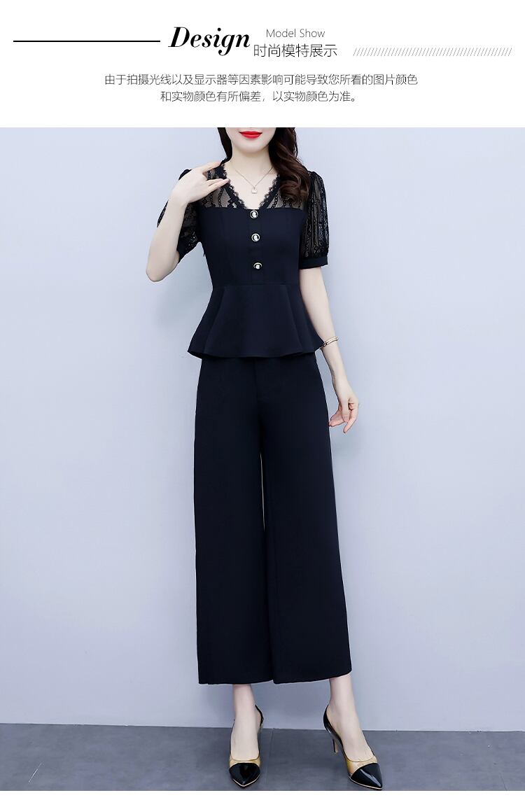 レースサマートップス ハイウェストウェストワイドレッグパンツ セット 大きめサイズ 夏物 ワイドパンツ muto69023549382