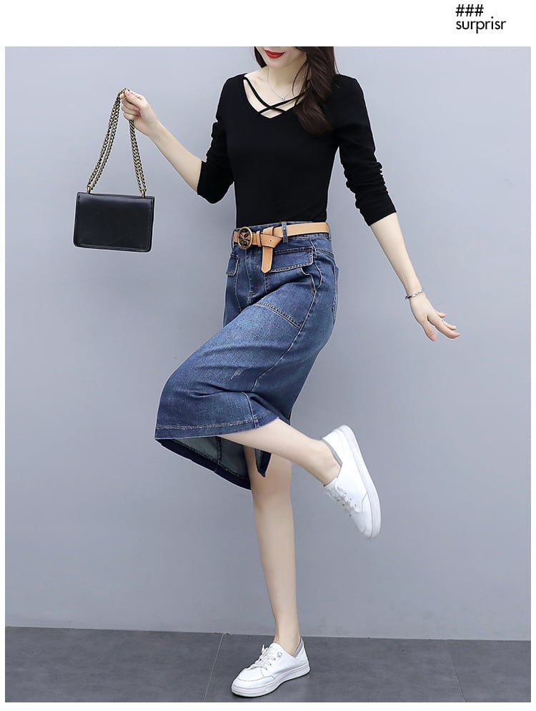 色:5026Y#ブラックトップ,5026K#デニムスカート,5026Group#ブラック