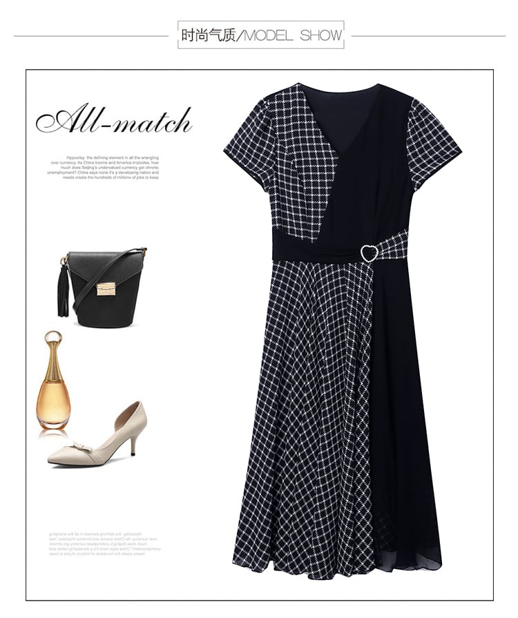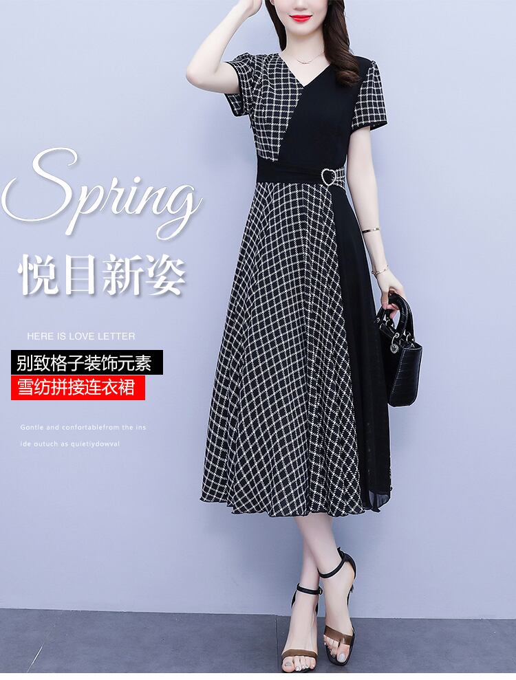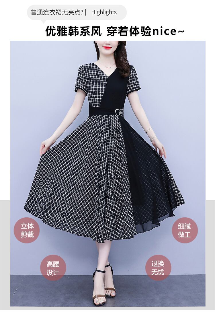 格子柄スカート サマー薄手シフォンドレス 大きめサイズ 夏物 ステッチ muto78907200934