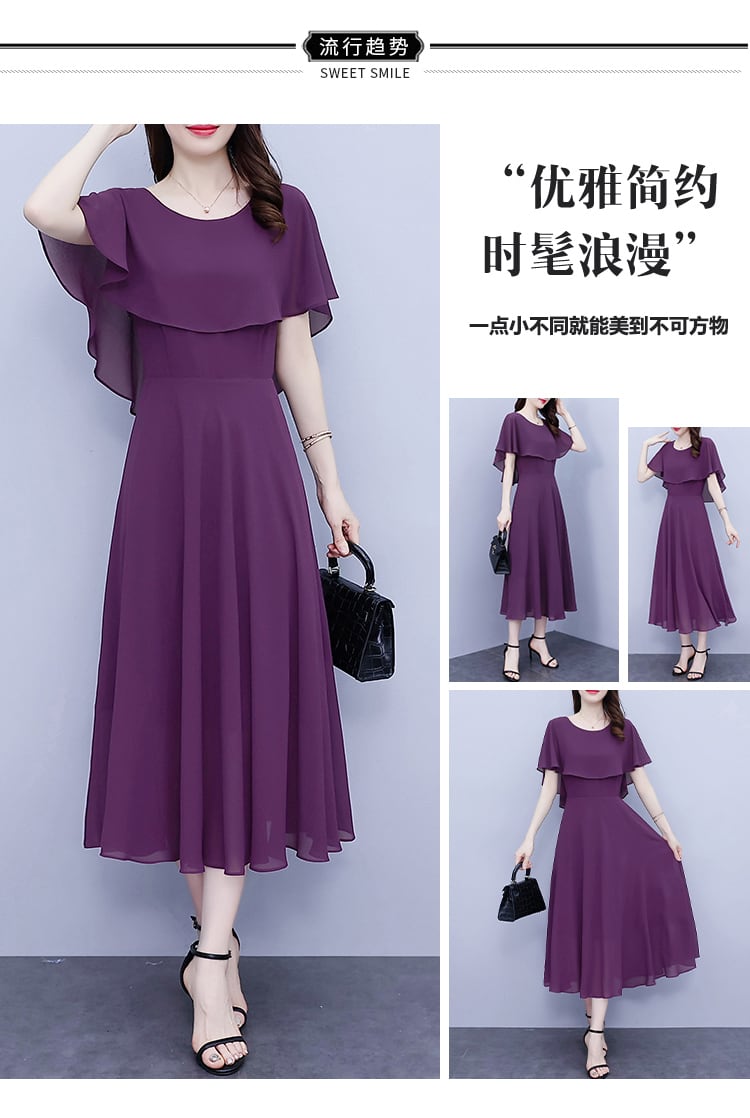 シフォンドレス サマーウェスト薄手ロングスカート アンクル 大きめサイズ 夏物 パープル muto57935019102