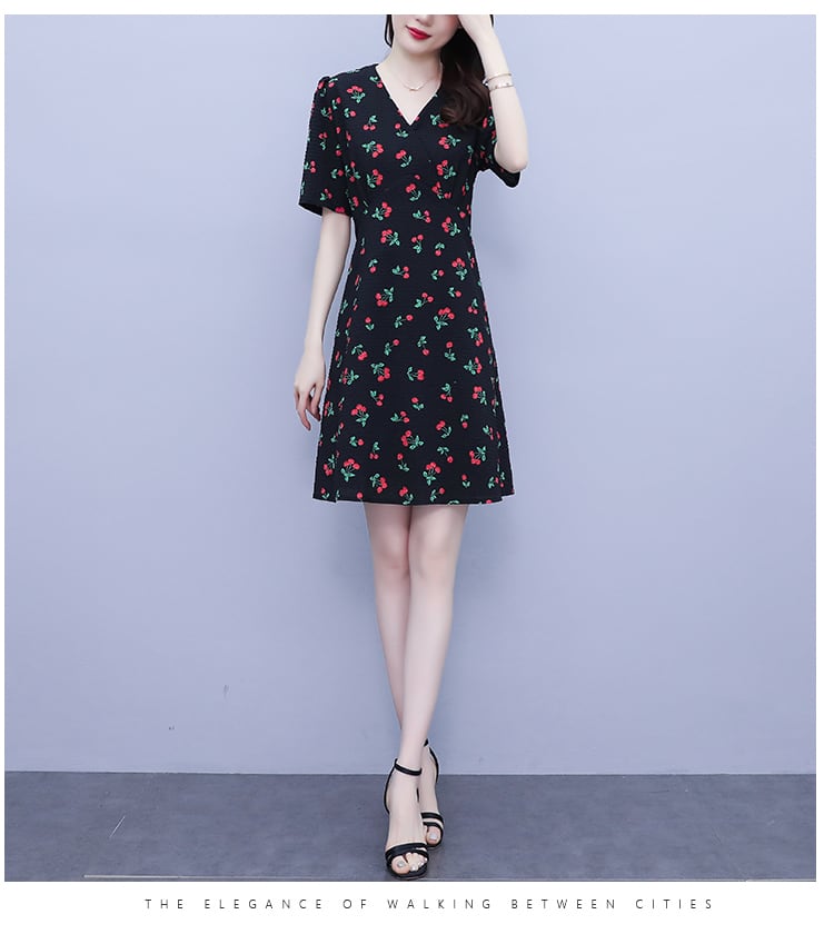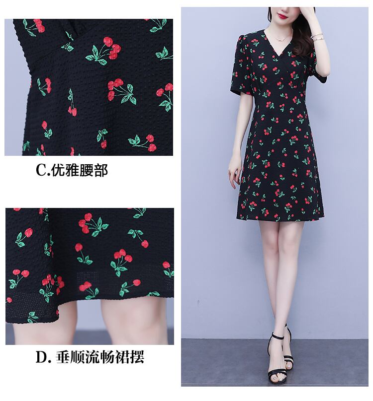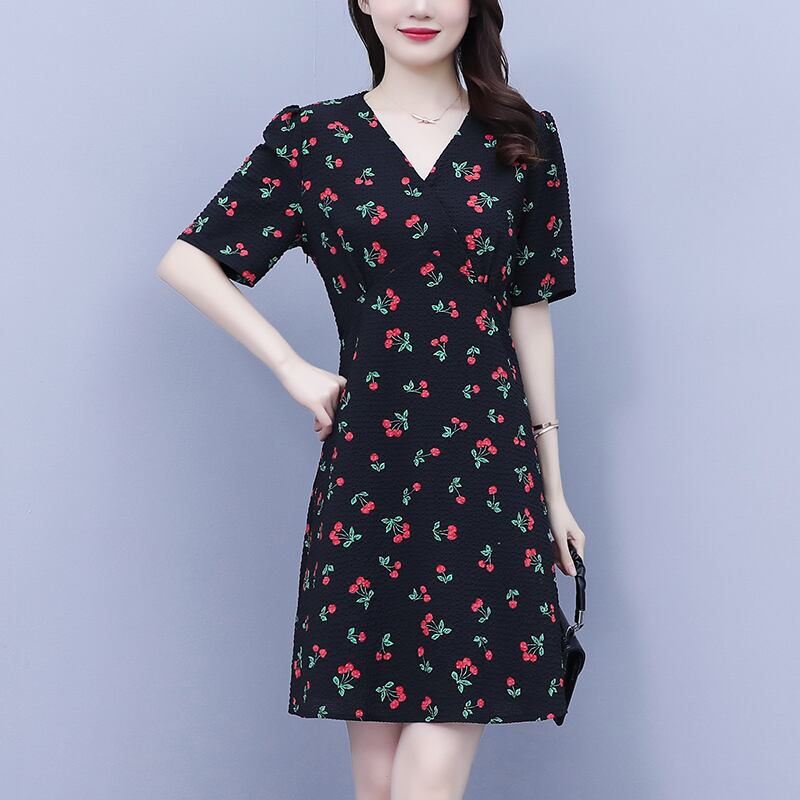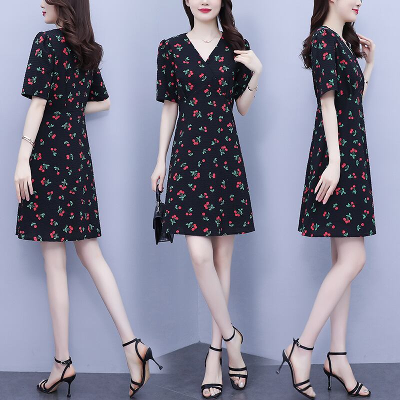 薄手Vネックフローラルドレス サマースタイルスカート 大きめサイズ 夏物 花柄 muto67249662030