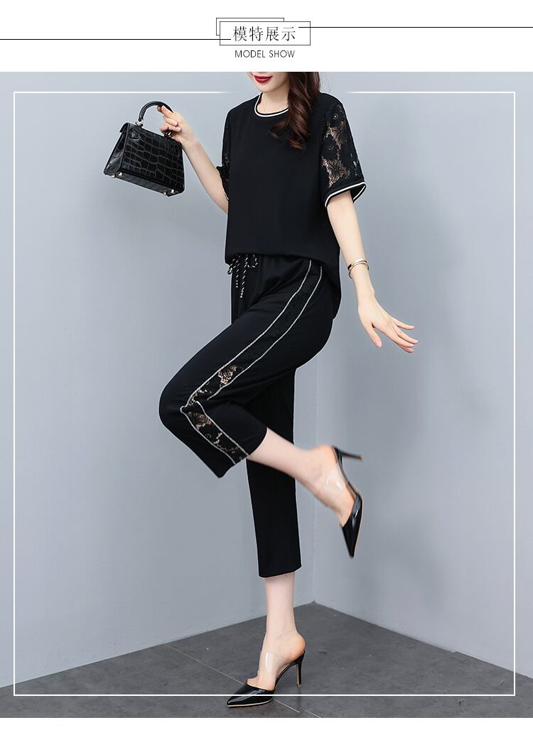 サマースタイル薄手カジュアルパンツ セット 大きめサイズ 夏物 ステッチ muto93858238544