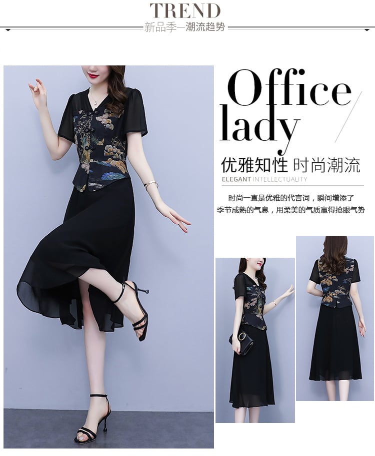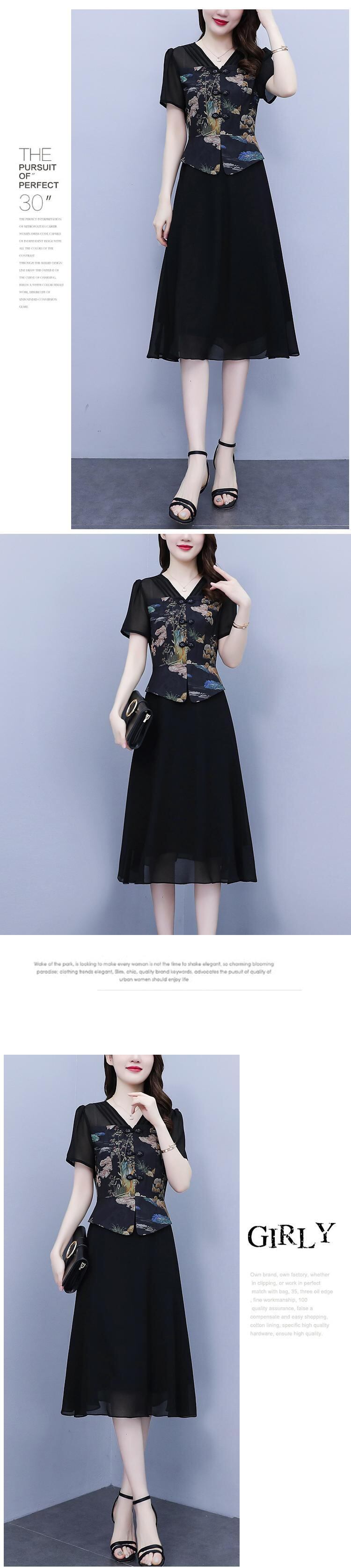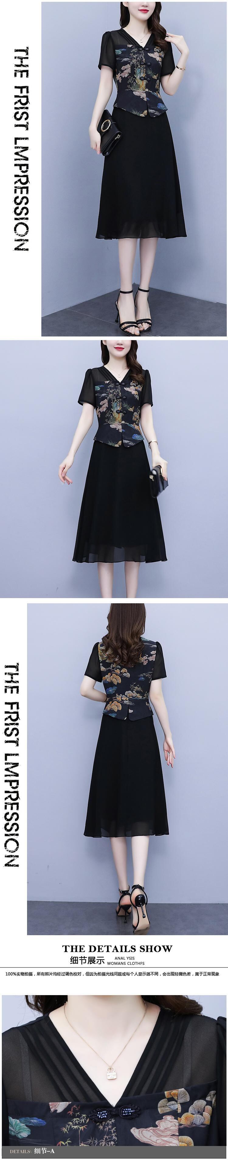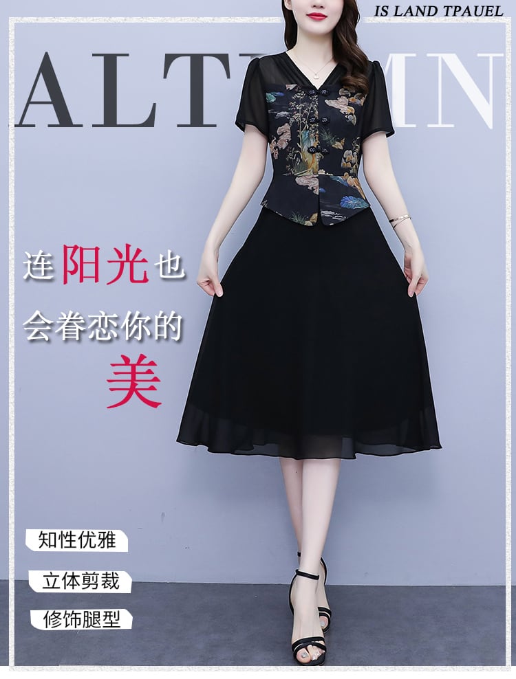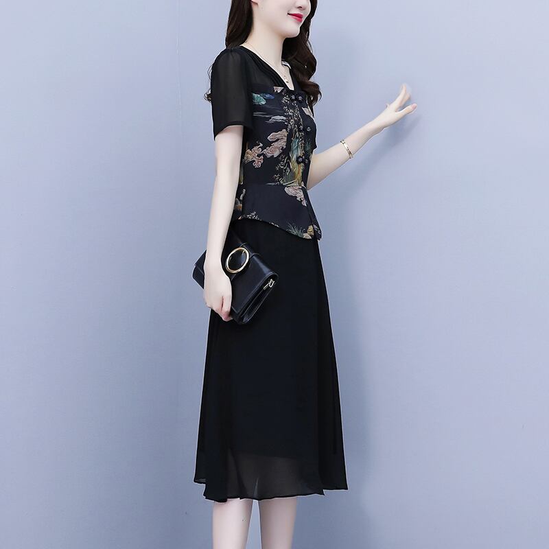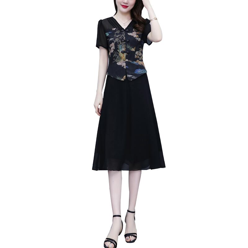 サマースタンダードプリントシフォンスカート 薄手ドレス レディース レトロ 大きめサイズ 夏物 muto33060558479