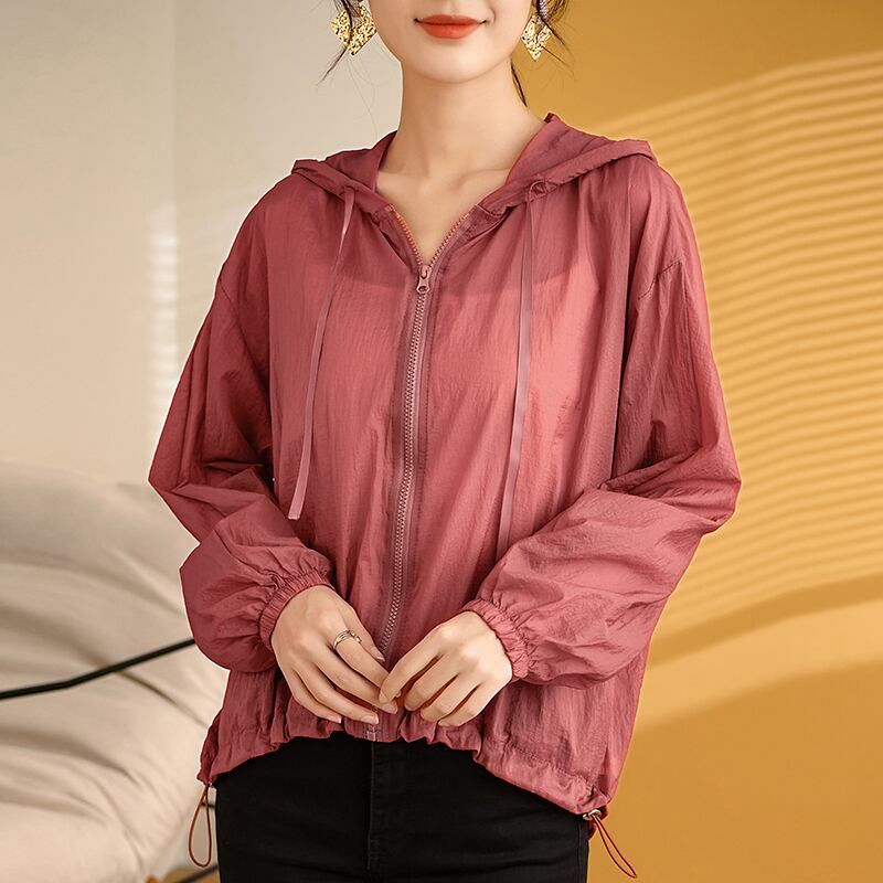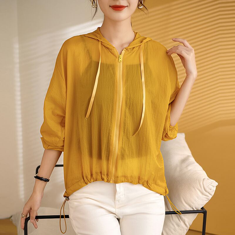 フード薄手サマーコート ルーズショート 大きめサイズ 夏物 muto93149874753