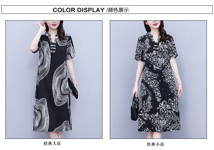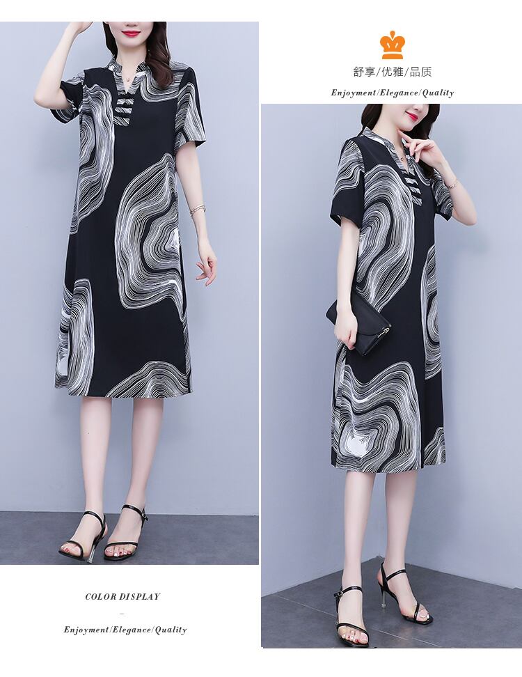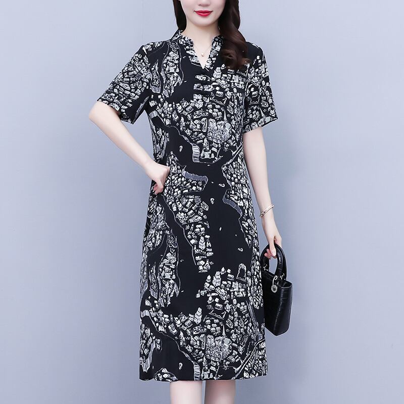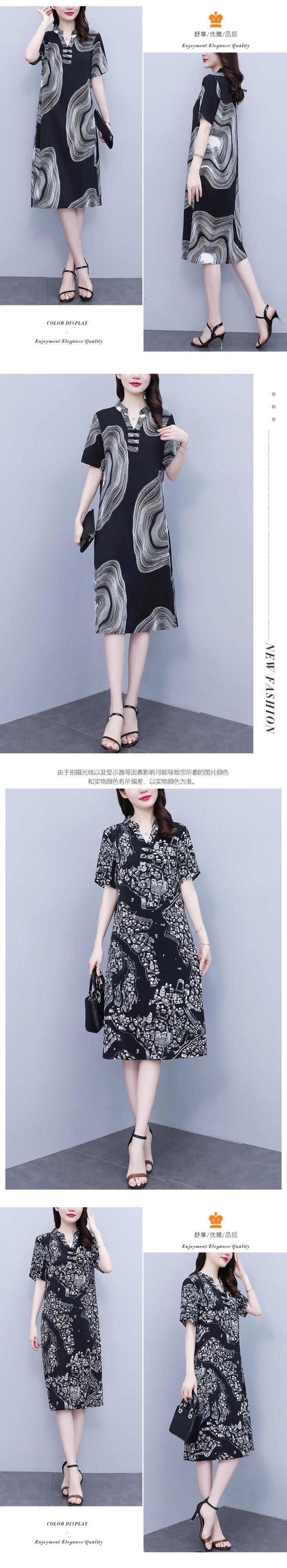 サマー薄手ブラックプリントドレス 夏物 muto3356881735