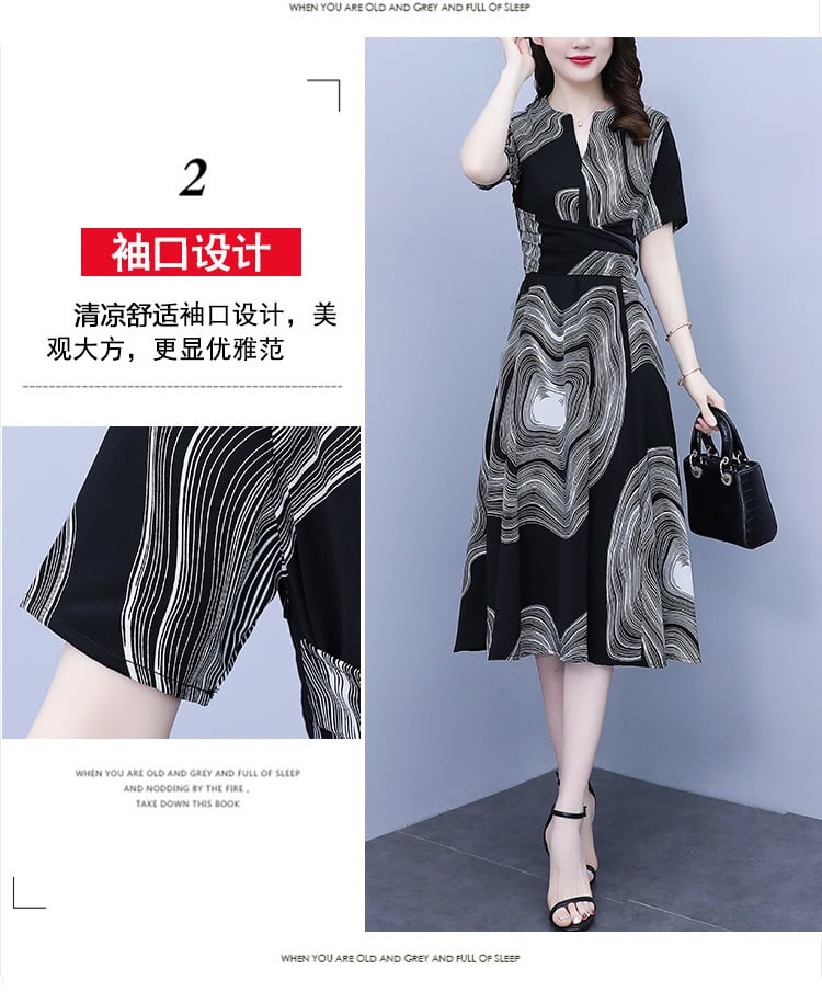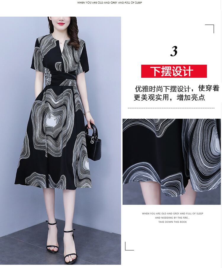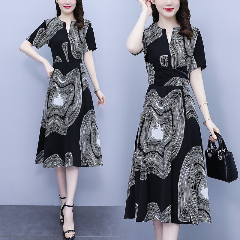 プリント柄ドレス サマールーズウェストスリムスカート 大きめサイズ 夏物 muto19870873773