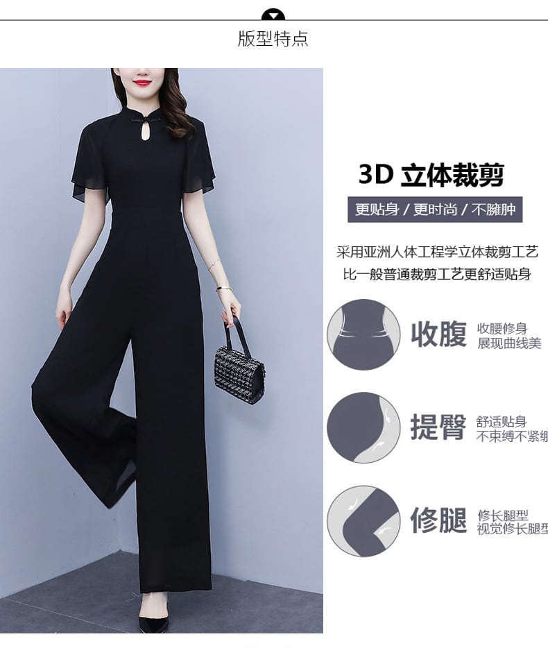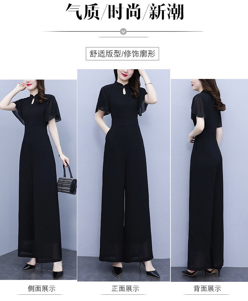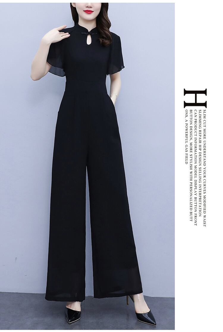 シフォンジャンプスーツ オールインワン サマースリムパンツ レディース 大きめサイズ 夏物 muto27884160222