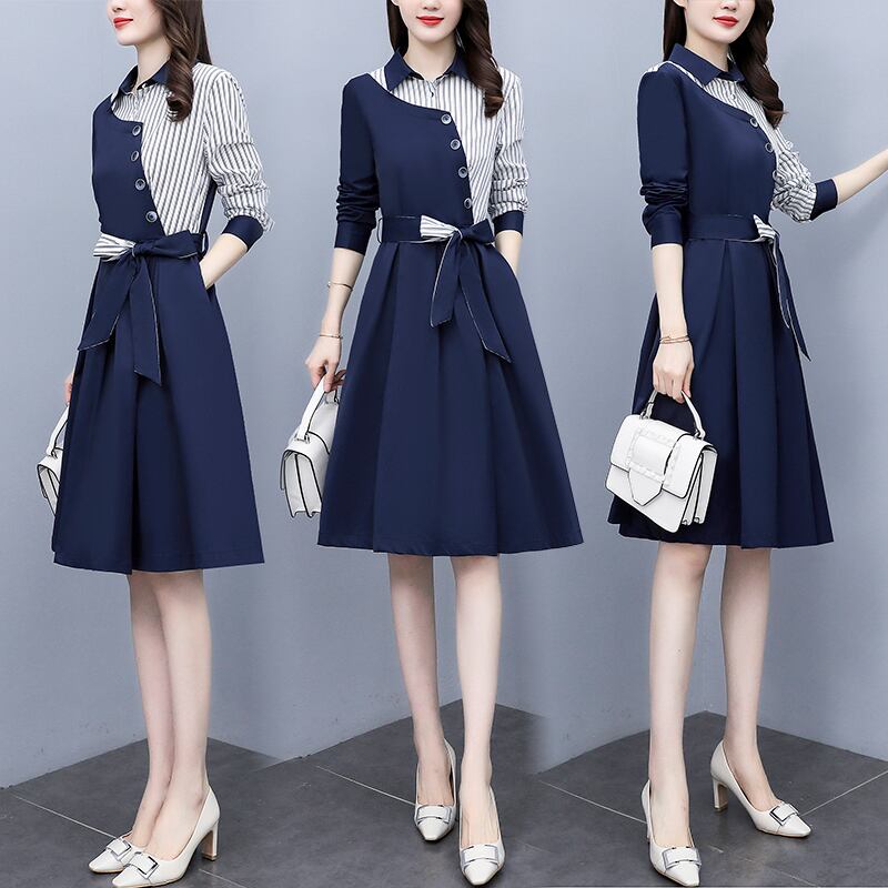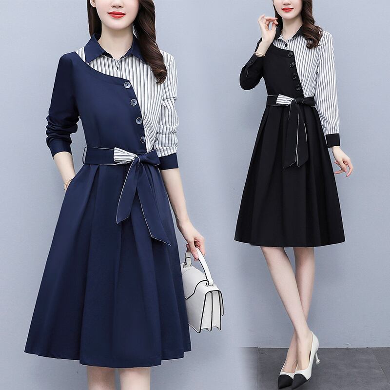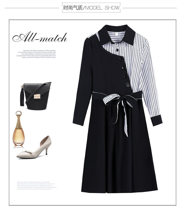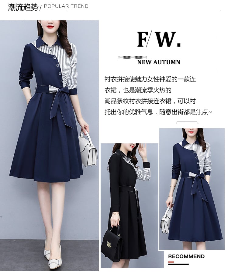 シャツ ドレス オータムスリムストライプスカート 大きめサイズ 秋物 ステッチ muto95491305485
