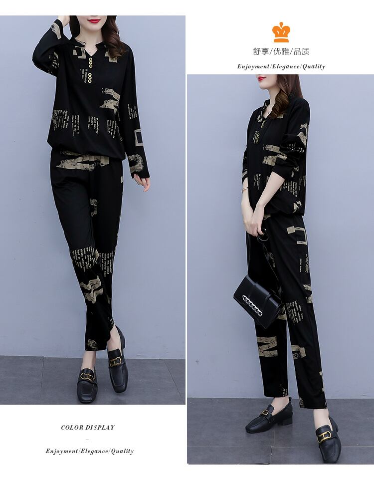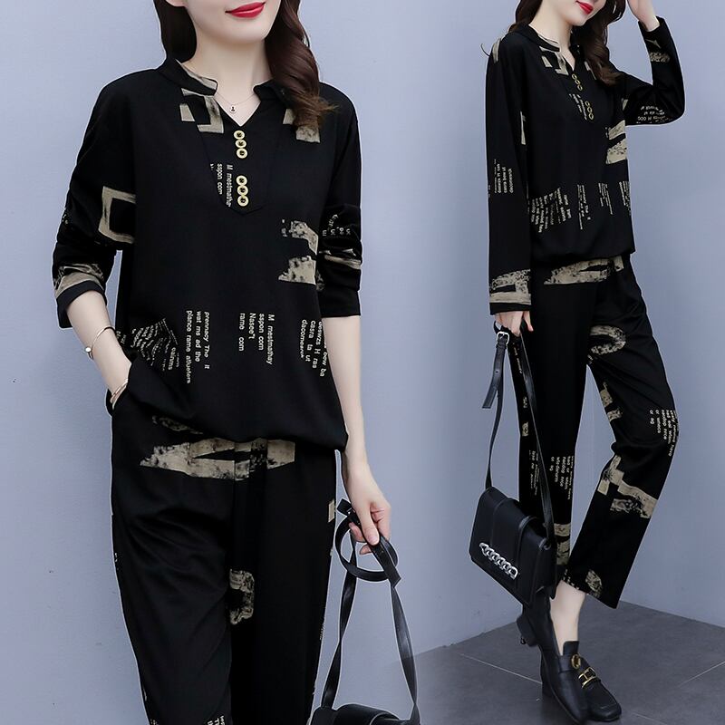プリント柄オータムスタイルスリムパンツ セット 大きめサイズ 秋物 muto18170508402