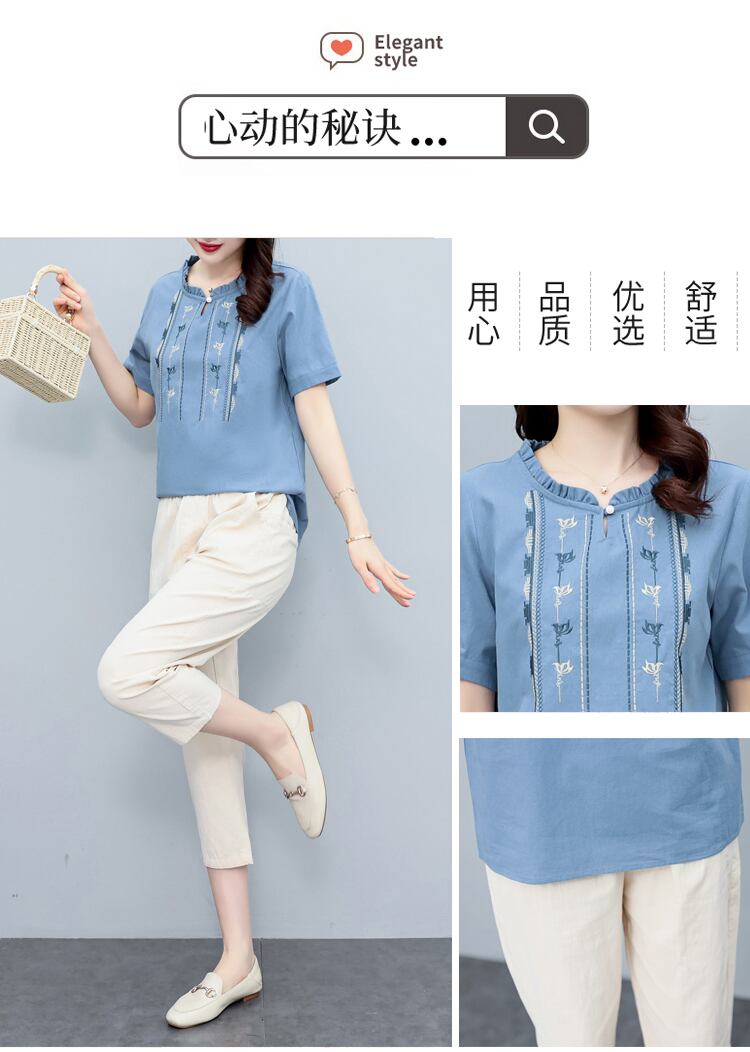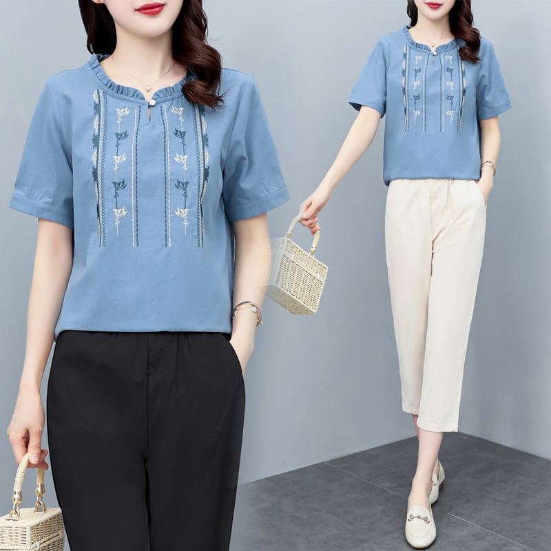 カジュアルシャツ 刺繍サマースタイル薄手 大きめサイズ 夏物 muto32373757878