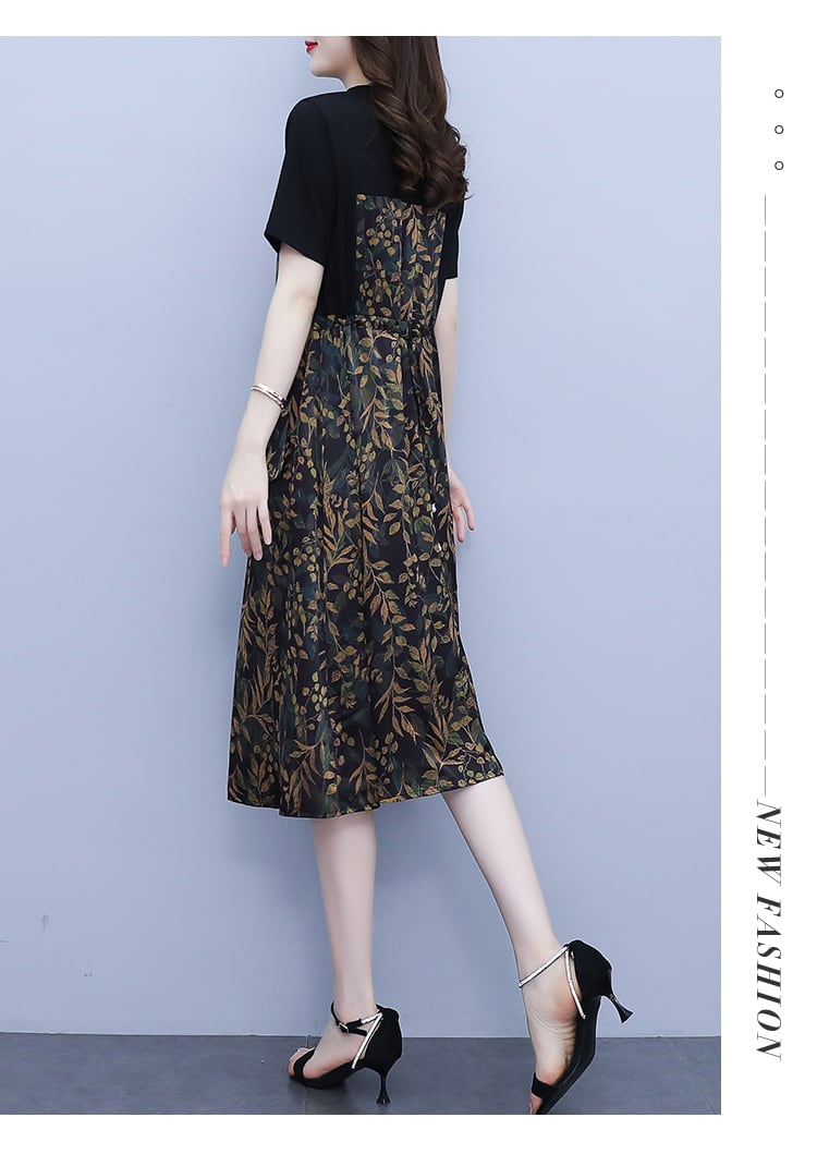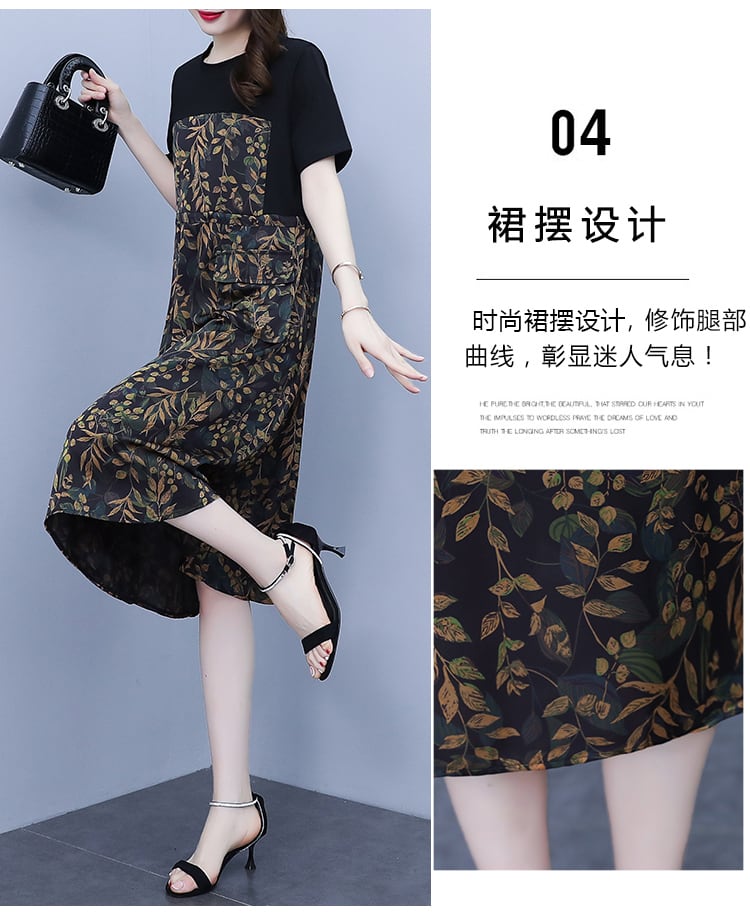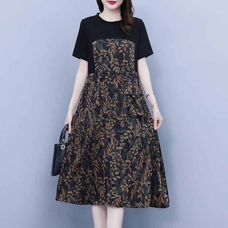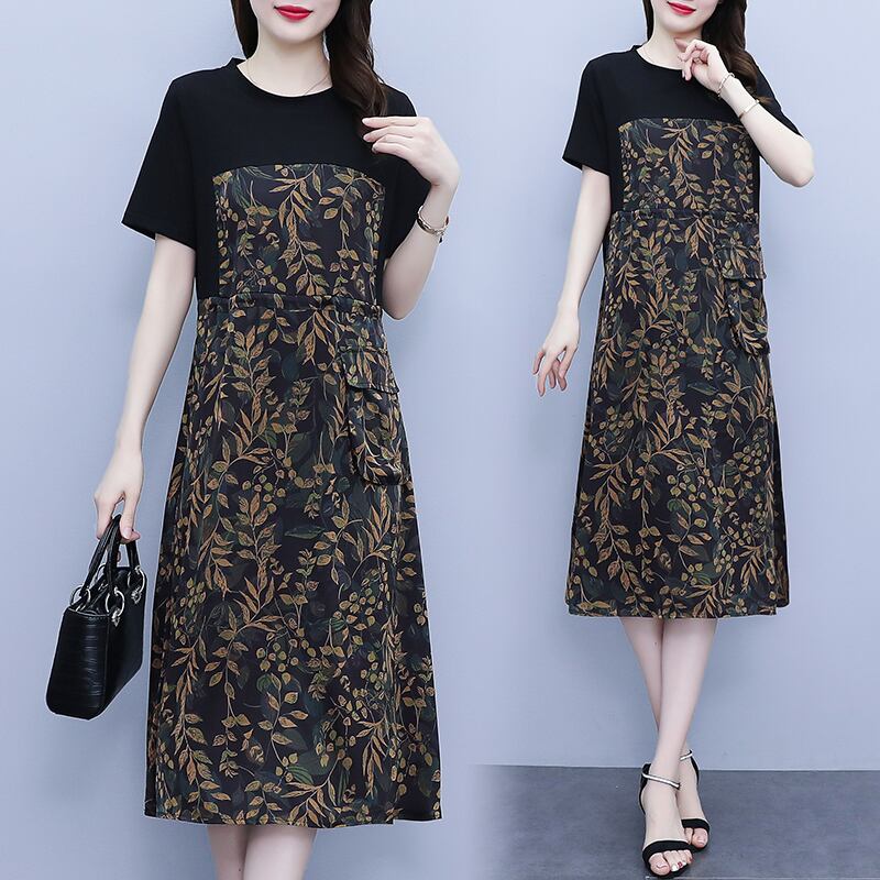 カラーフローラルドレス サマールーズスリムスカート 大きめサイズ 夏物 花柄 muto52409231654