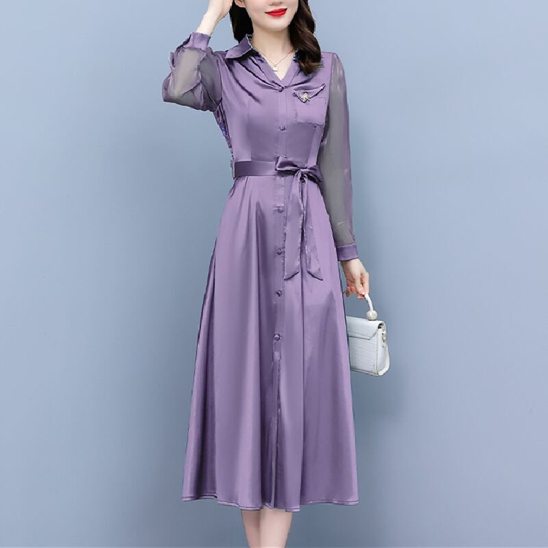 サテンロングドレス オータム薄手スカート 大きめサイズ 秋物 muto63215608470