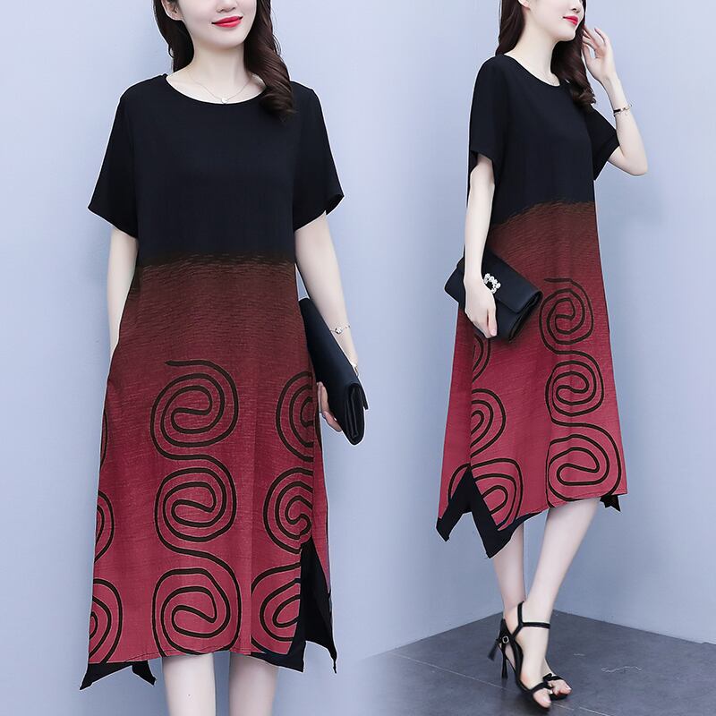 ドレス サマー薄手ルーズAラインスカート コットン 大きめサイズ 夏物 muto620464396
