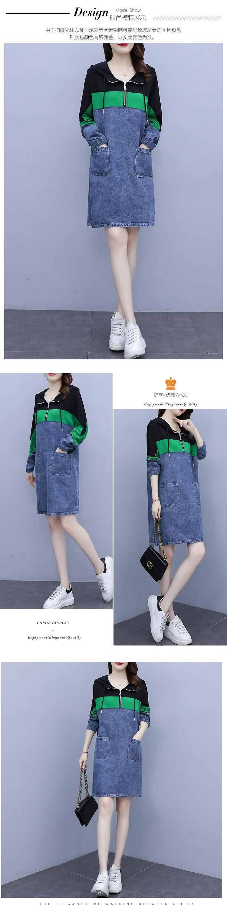 カラーフードドレス オータムスタイルルーズ薄手スカート 大きめサイズ 秋物 ステッチ muto53464392161