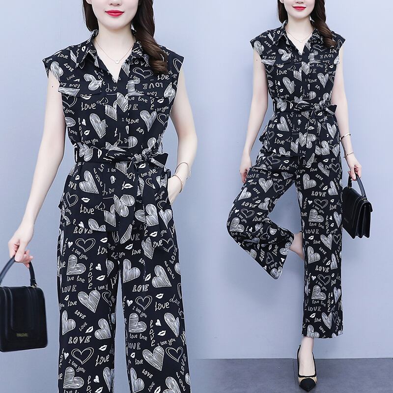 シフォンサマー薄手プリントパンツ セット 大きめサイズ 夏物 muto42259616759