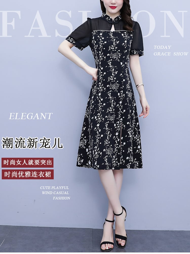 シフォンプリント柄ドレス サマーウェストスカート 大きめサイズ 夏物 muto46462440681