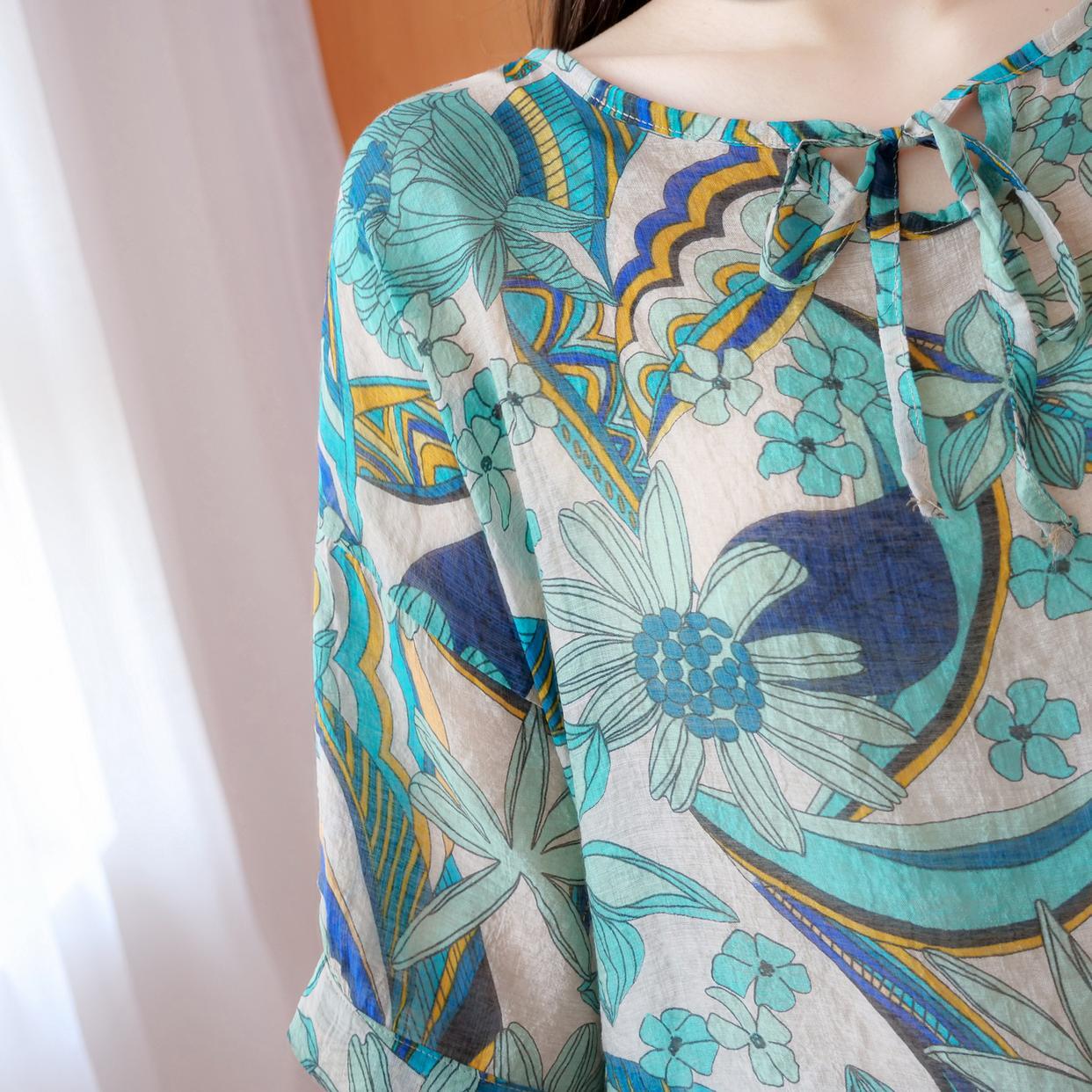 プリントスタンダードシャツ サマーTシャツ トップス コットン レトロ レース 大きめサイズ 夏物 レースアップ muto5330281670