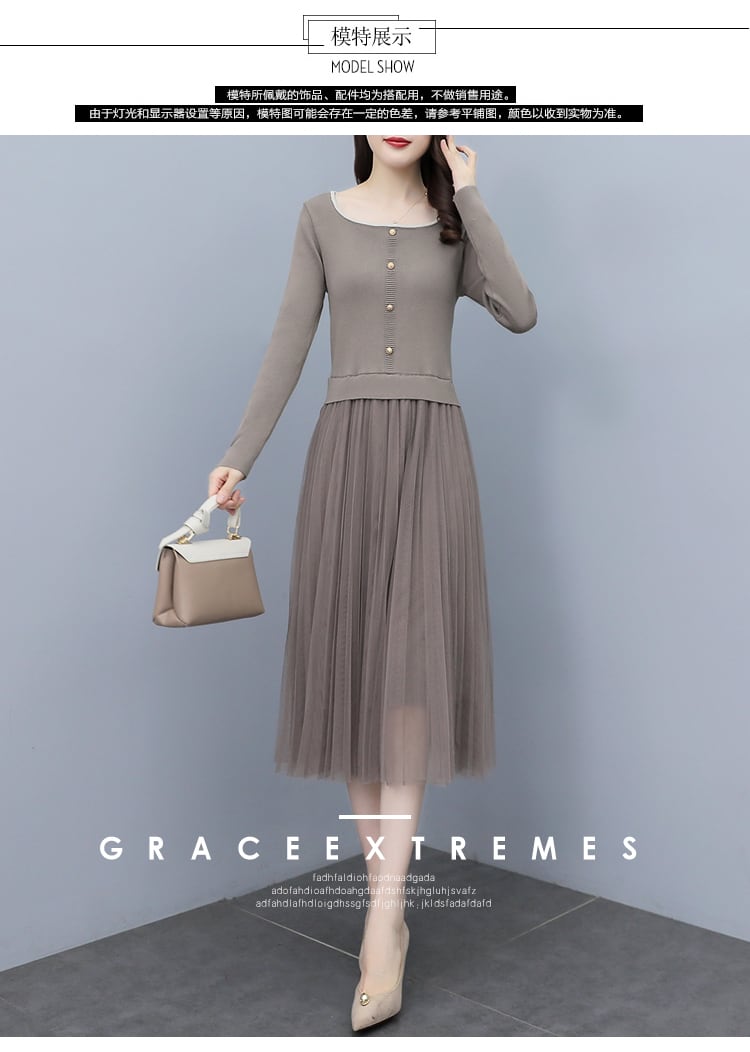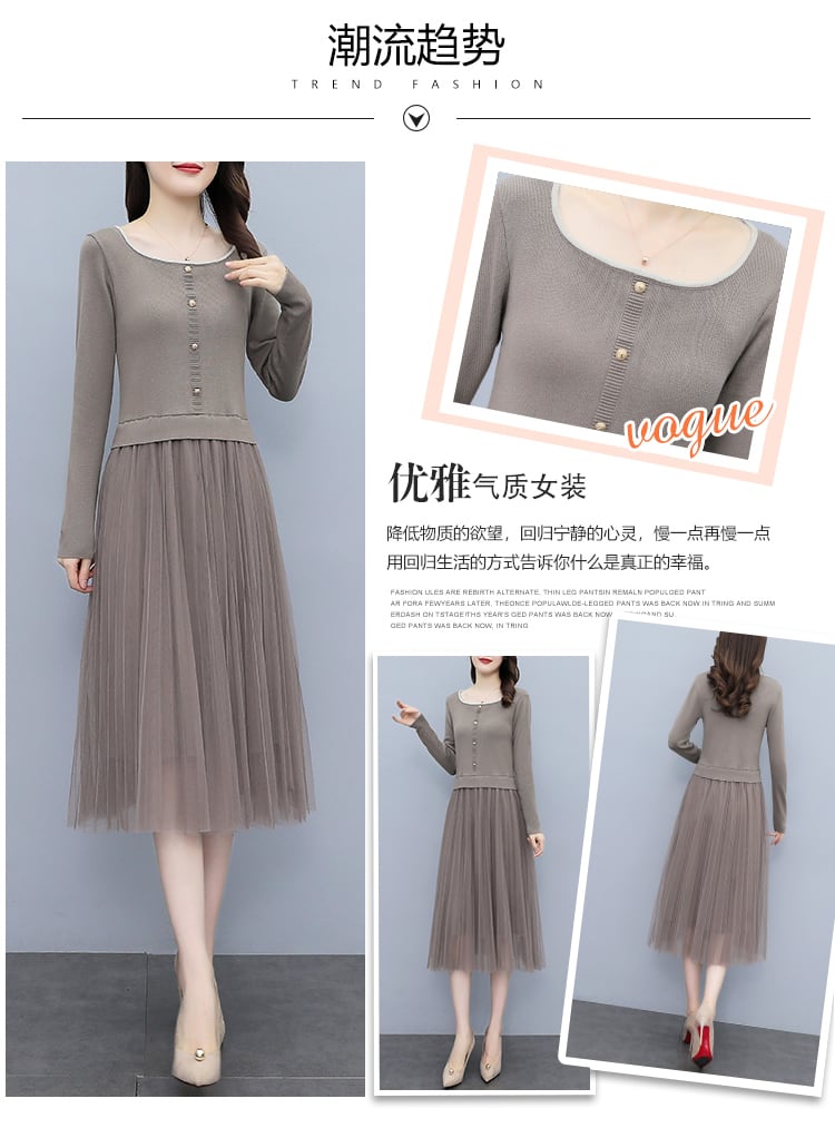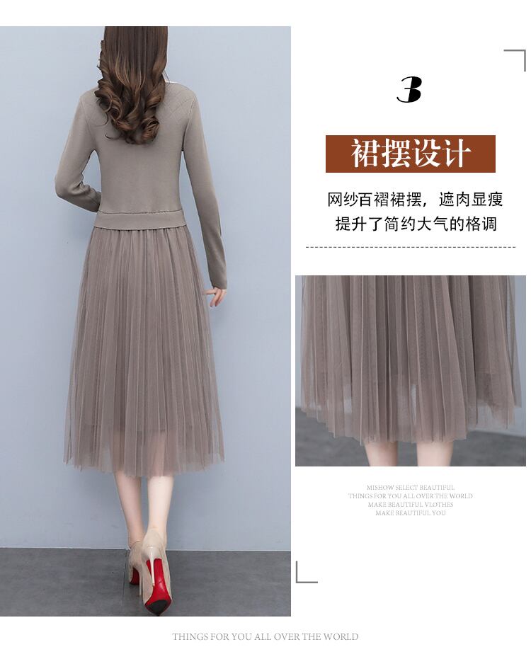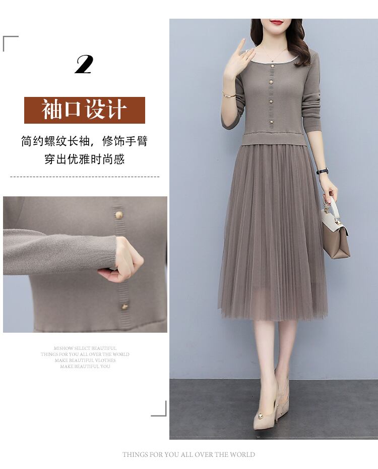 スプリングウェストセーター ニットドレス メッシュスカート 大きめサイズ 春物 ステッチ muto26157038529
