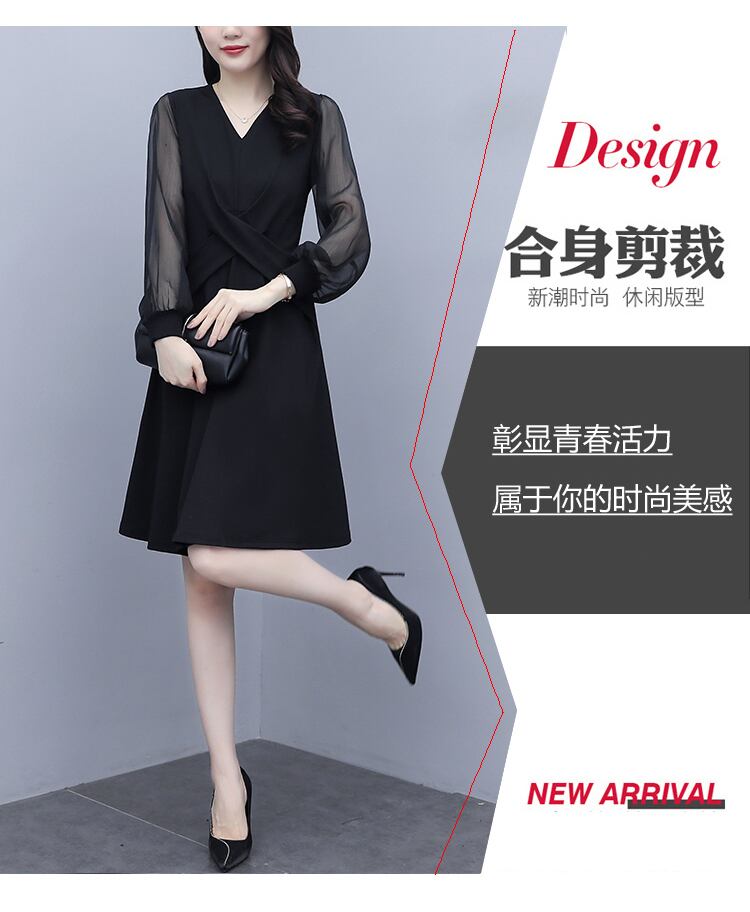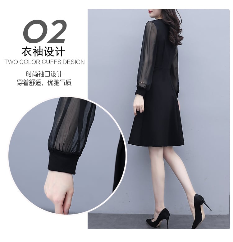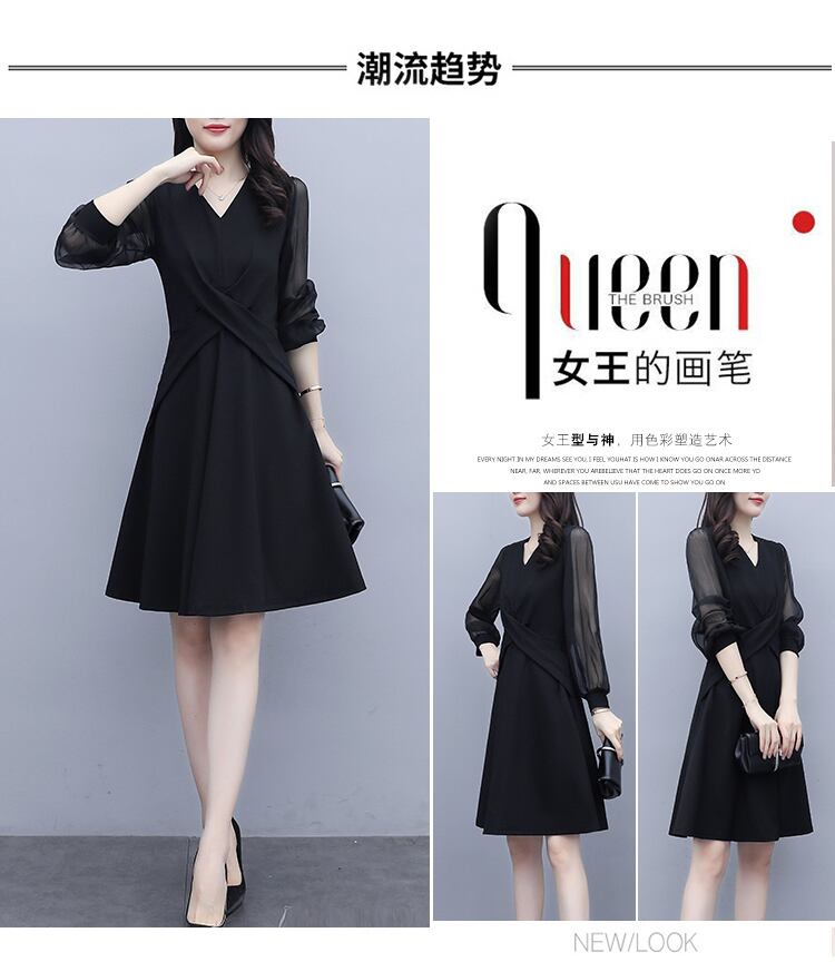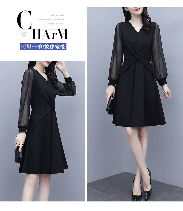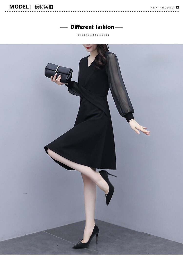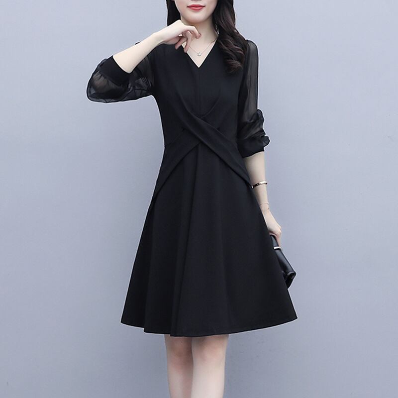 シフォンドレス オータム薄手ブラック 大きめサイズ 秋物 muto5520947888