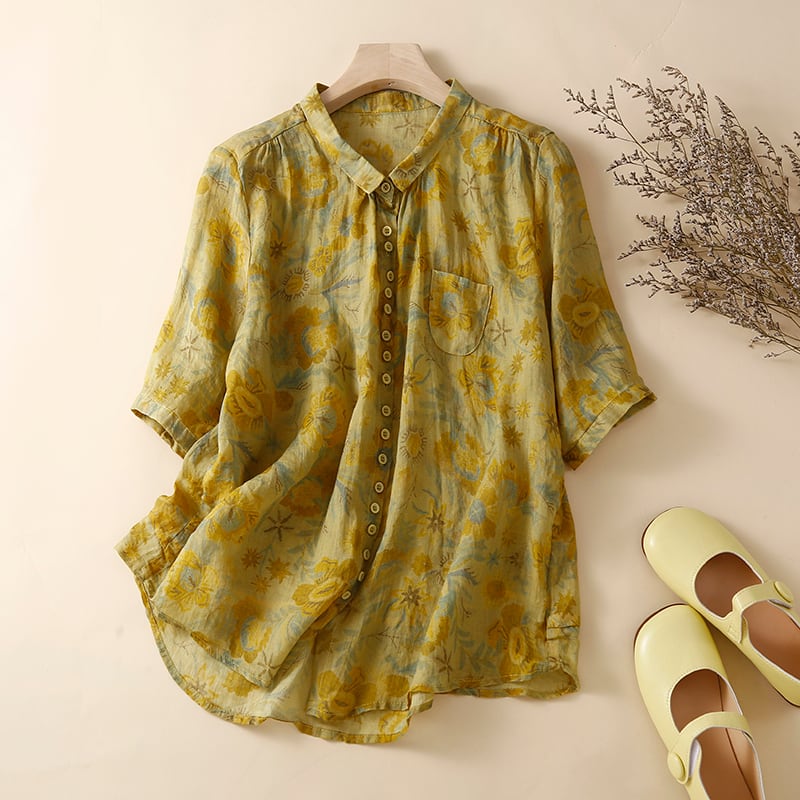 フローラルシャツ サマールーズ薄手カーディガントップス 大きめサイズ 夏物 花柄 muto21262423019