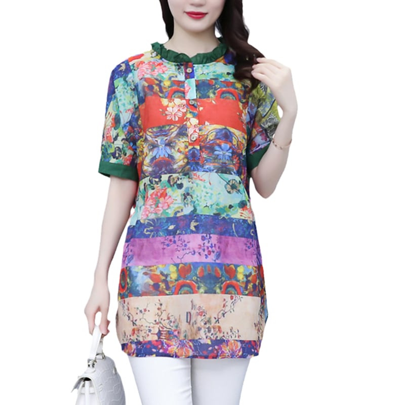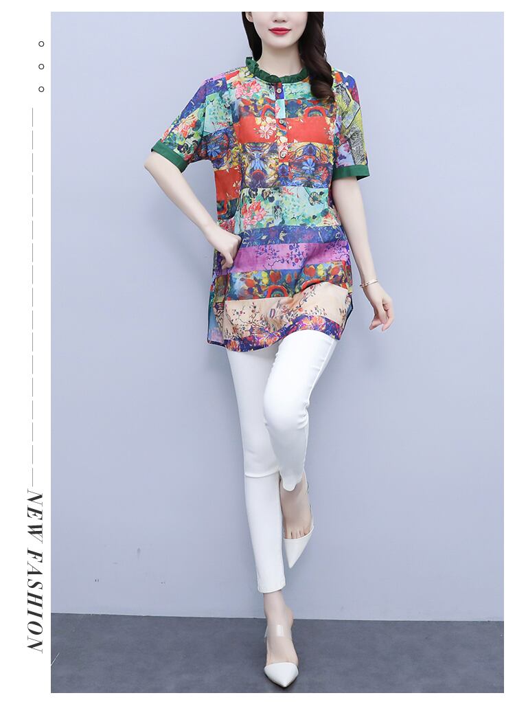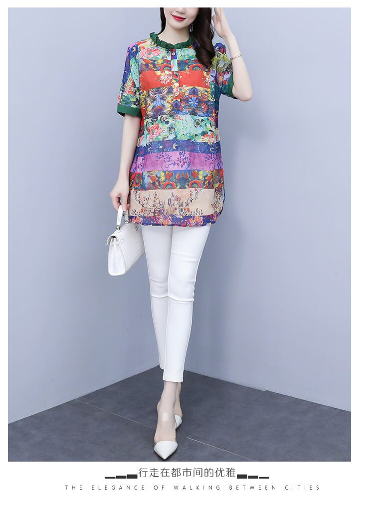 Flowerデザイン シャツ サマードレス ルーズトップス スタンダード レトロ 大きめサイズ 夏物 フラワーデザイン muto62671865903
