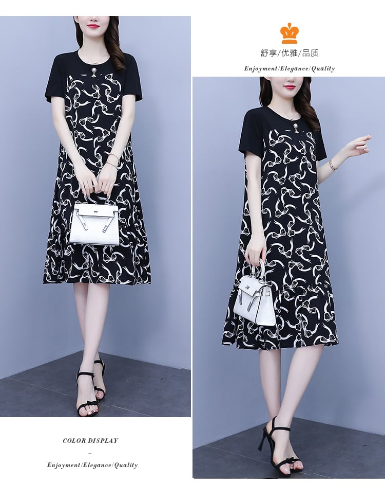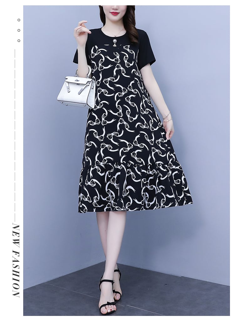 プリント柄ドレス サマールーズウェストスリムスカート 大きめサイズ 夏物 muto97964664867