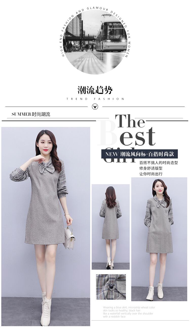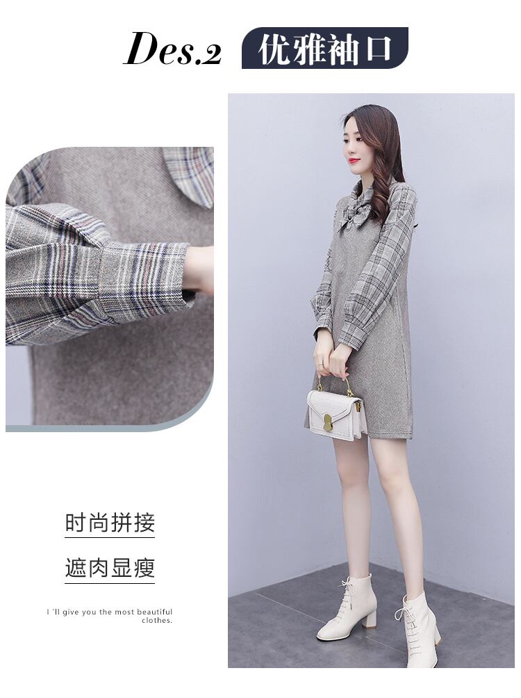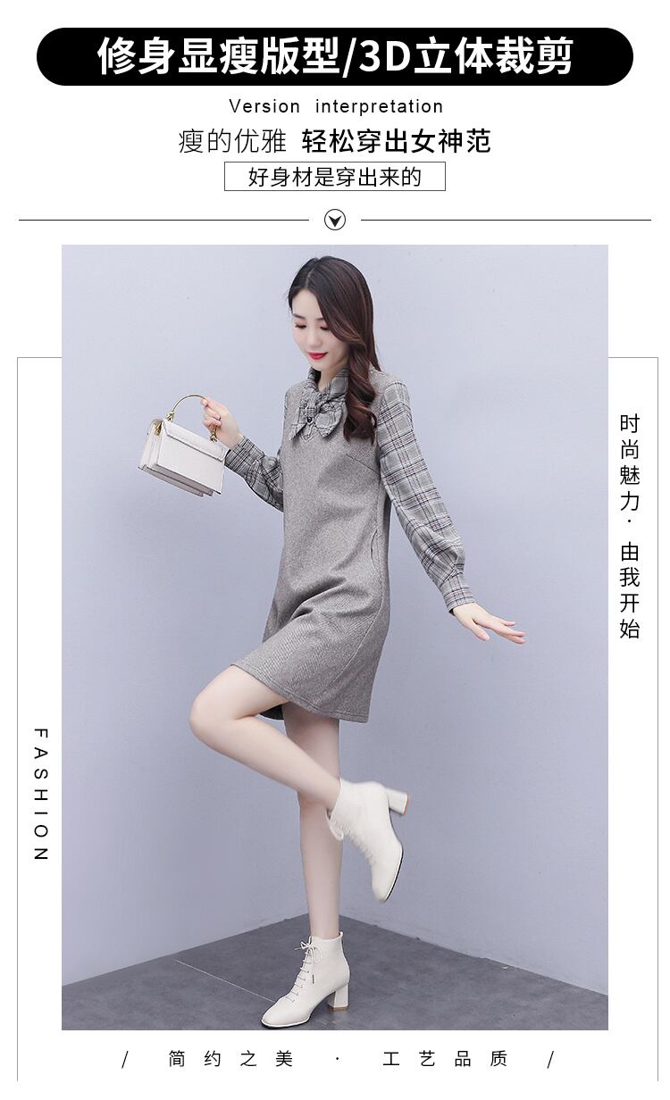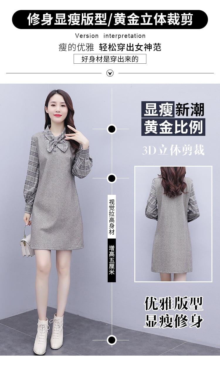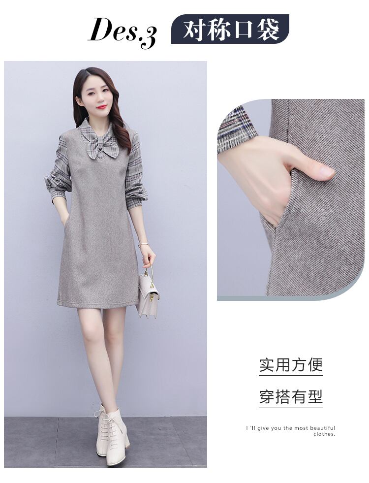 ドレス スプリング格子柄スカート ロング 大きめサイズ 春物 ステッチ muto8668868506