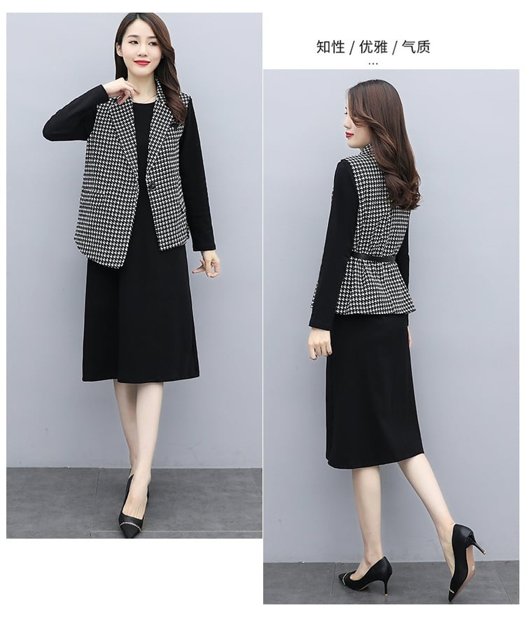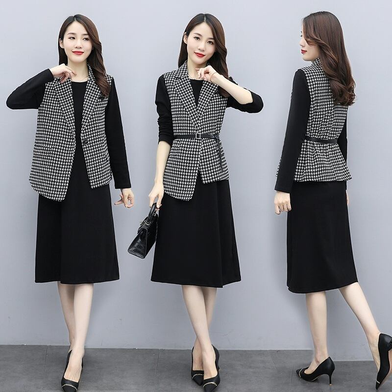 色:ブラックドレスワンpiece,Houndstoothvestsinglepiece,カーキvestsinglepiece,Houndstoothsuit,カーキsuit