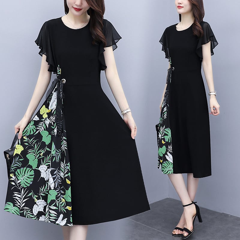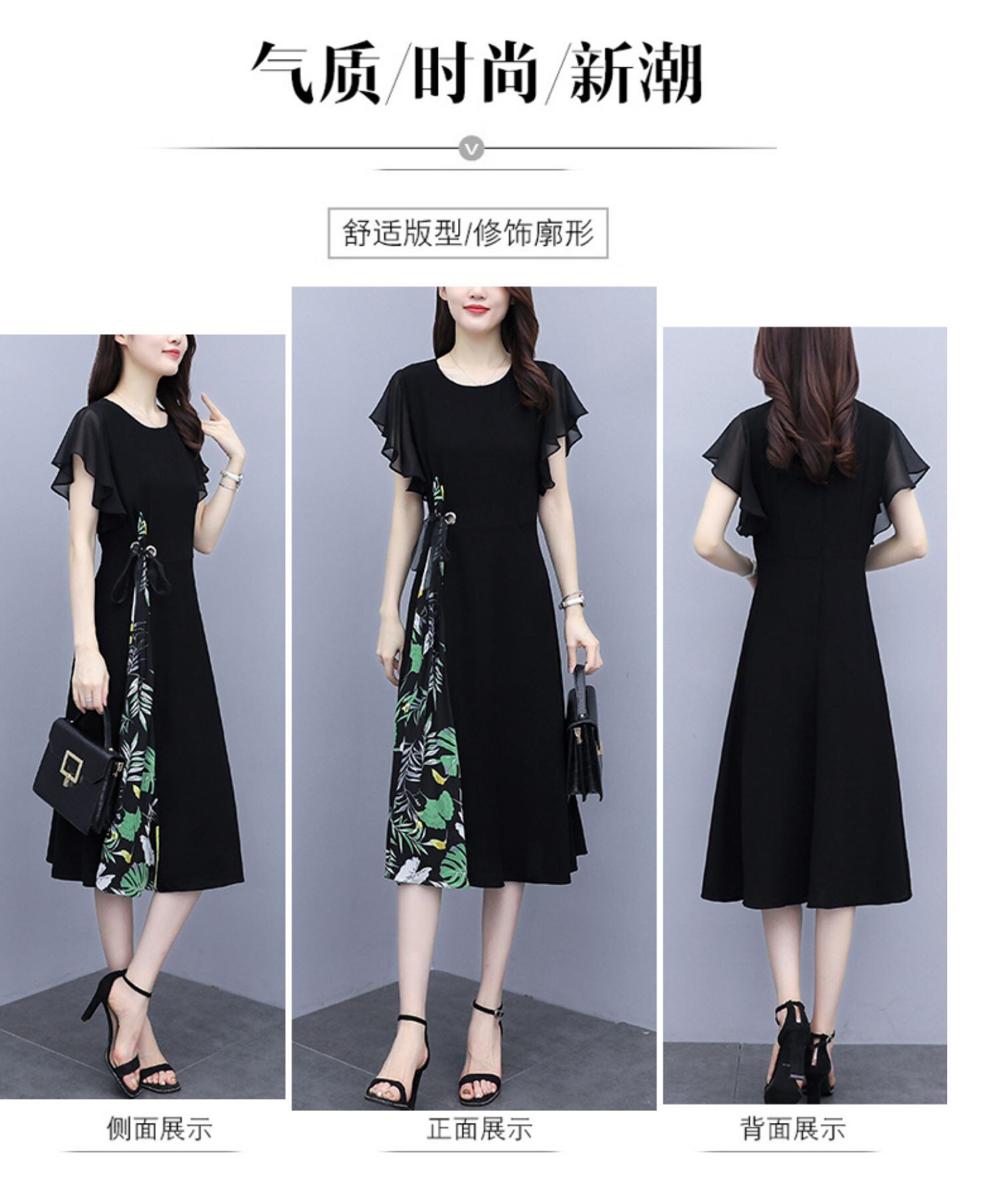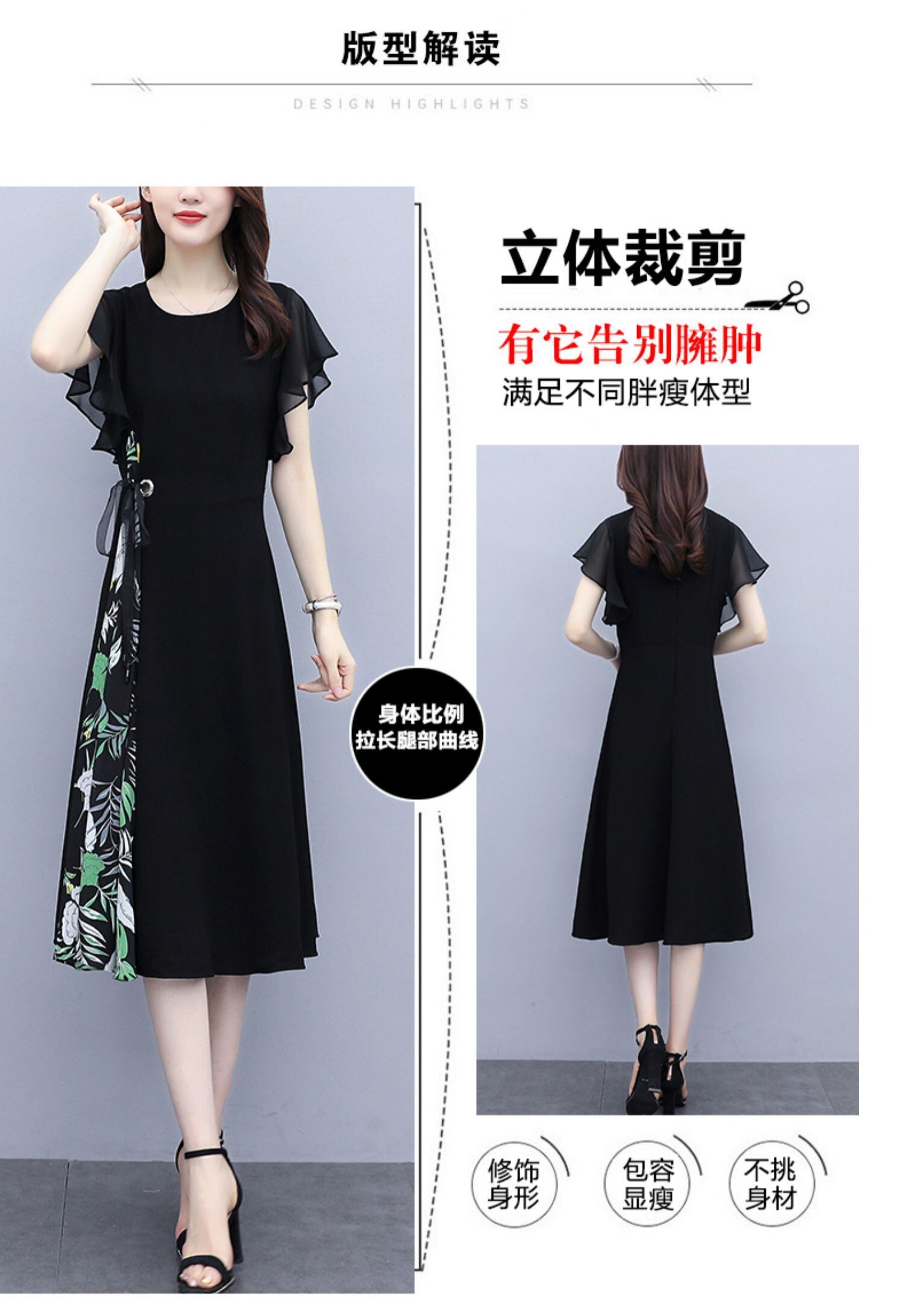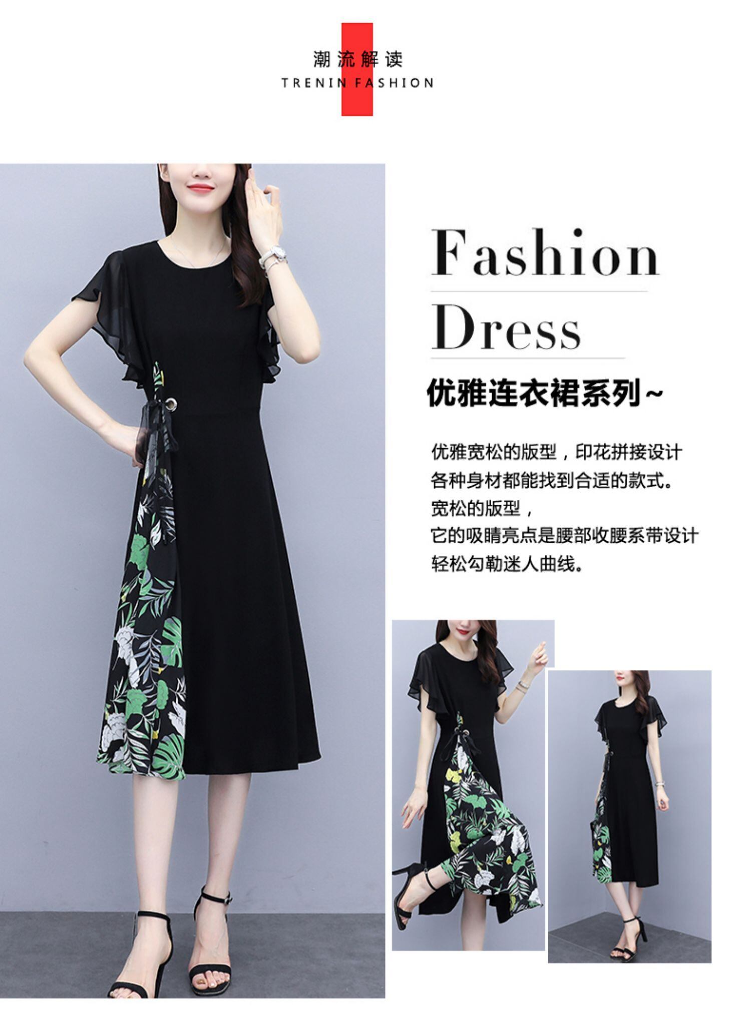スプリングスタイルウェストスリムシフォンフローラルドレス 大きめサイズ 春物 花柄 ステッチ muto44545182263