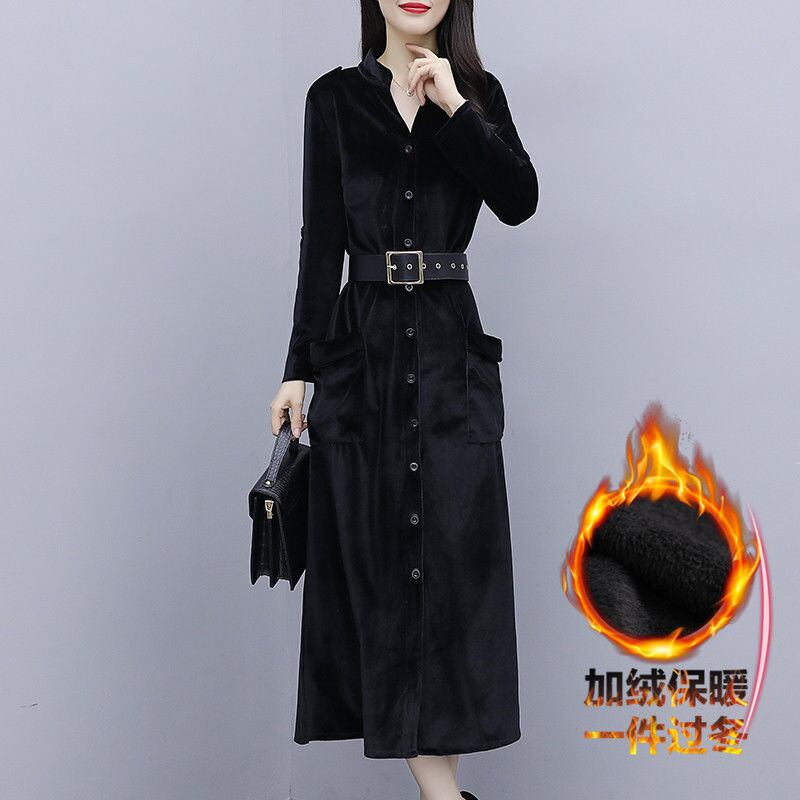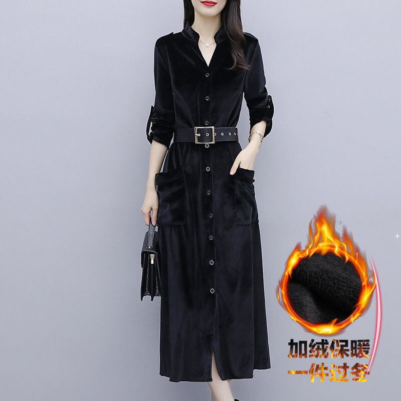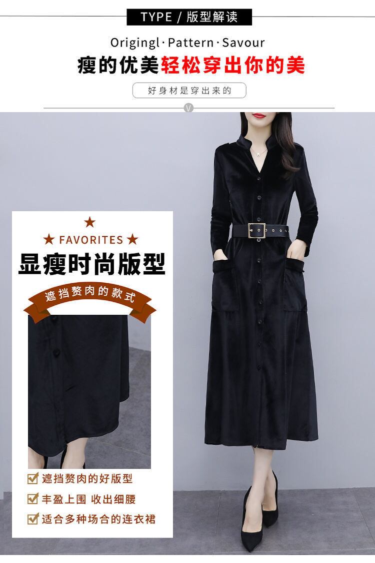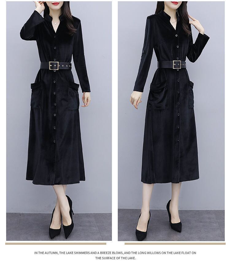 オータムウィンターゴールドベルベットドレス スリムロングスカート 大きめサイズ 秋物 冬物 muto86896809598