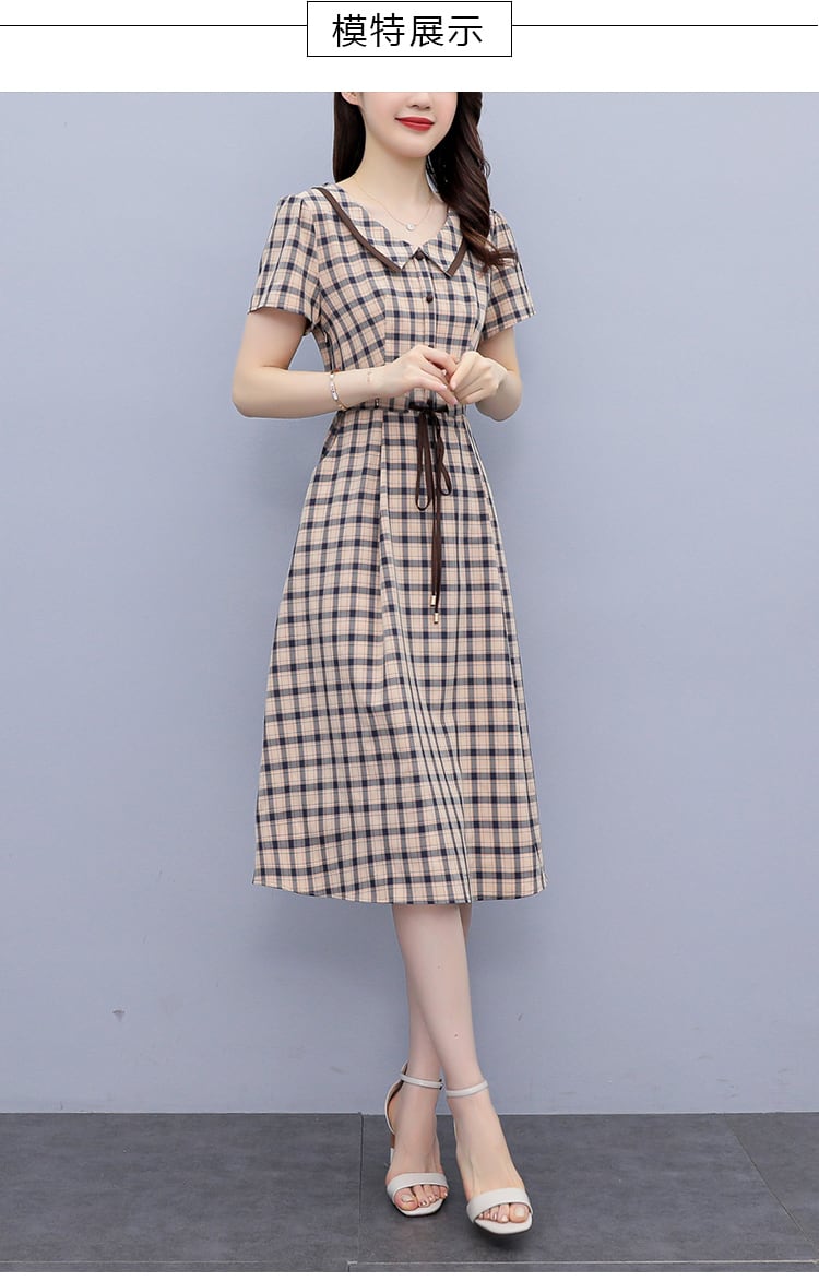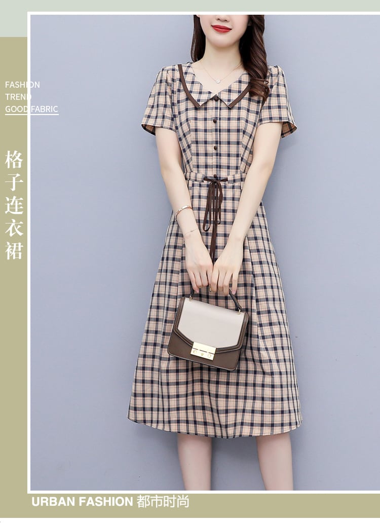 格子柄シフォンドレス サマー薄手カラースタイルスカート 大きめサイズ 夏物 muto98152175341
