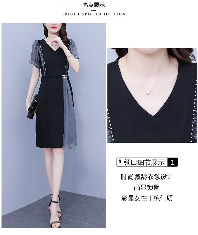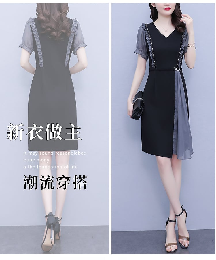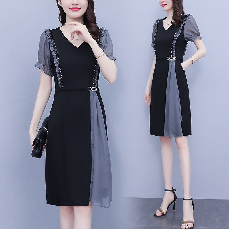ドレス スリムスカート サマーシフォン 大きめサイズ 夏物 ステッチ muto61476109455