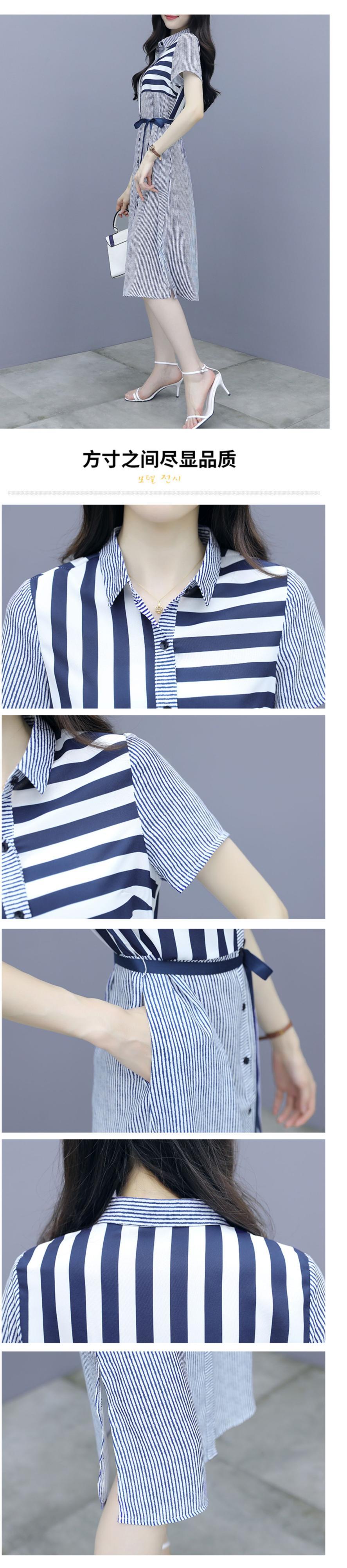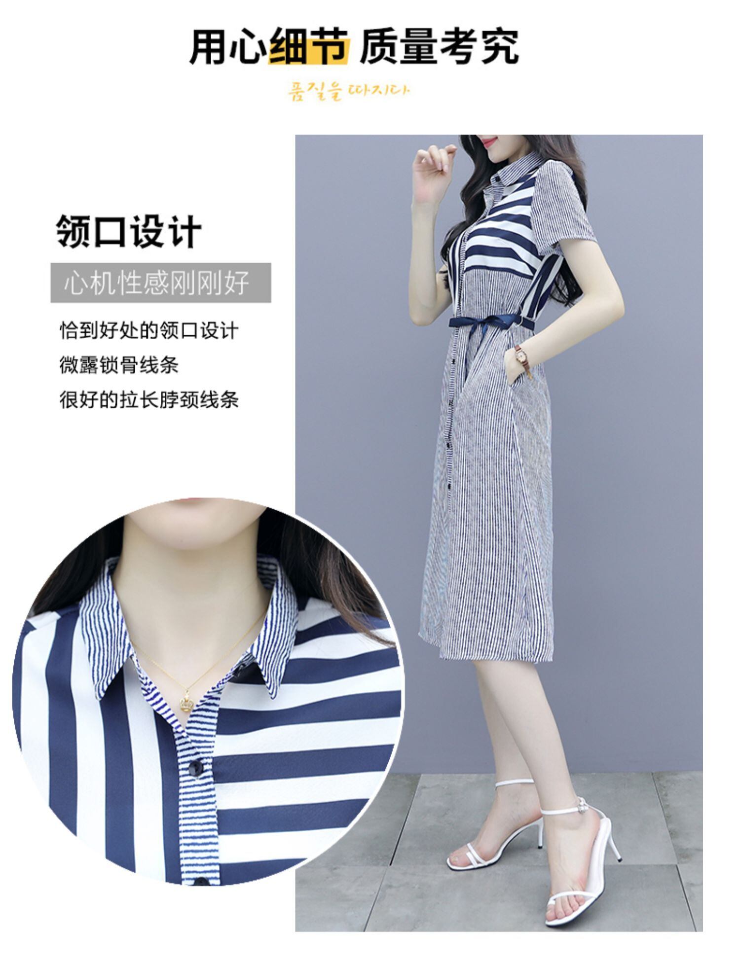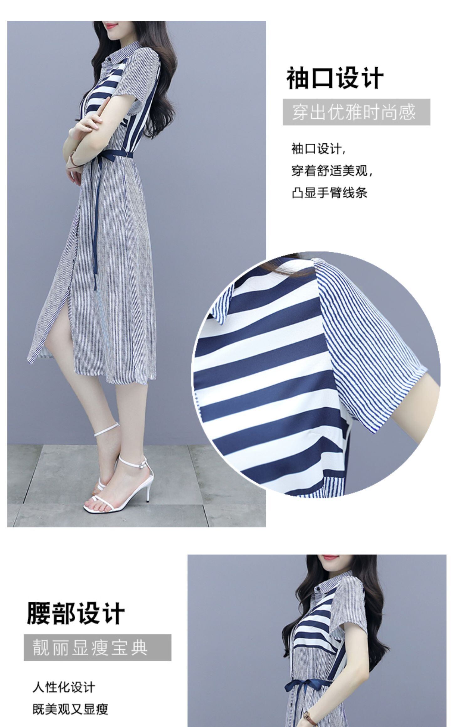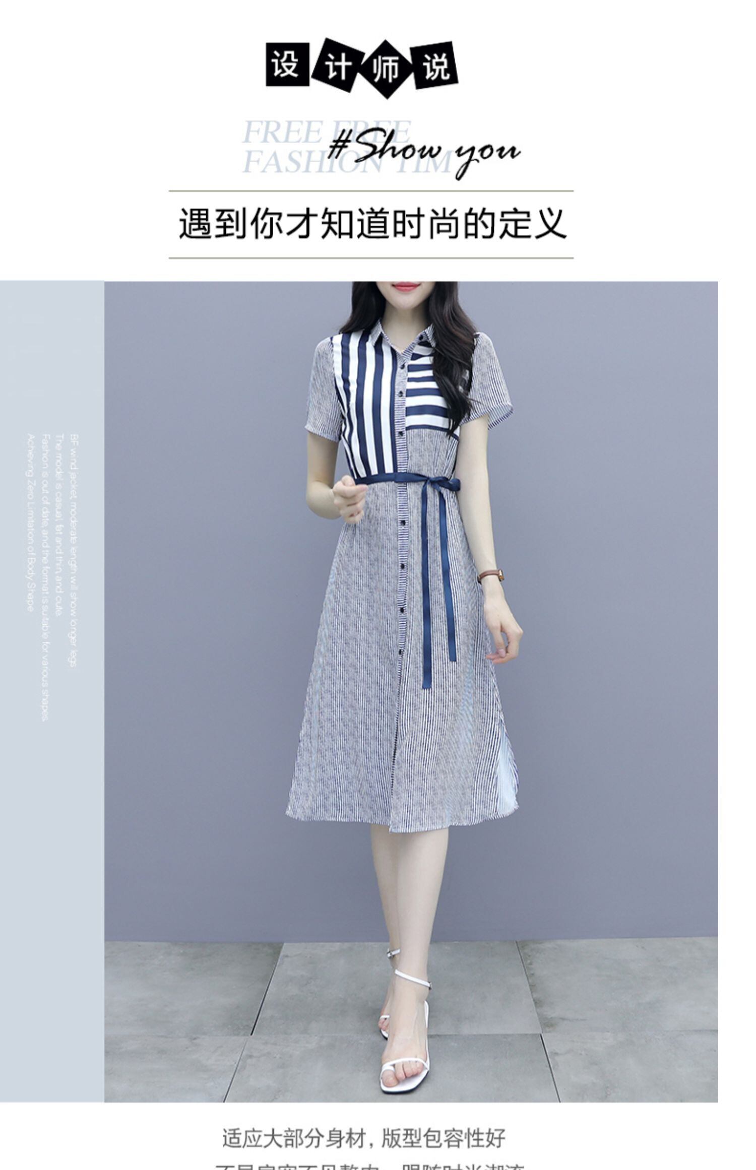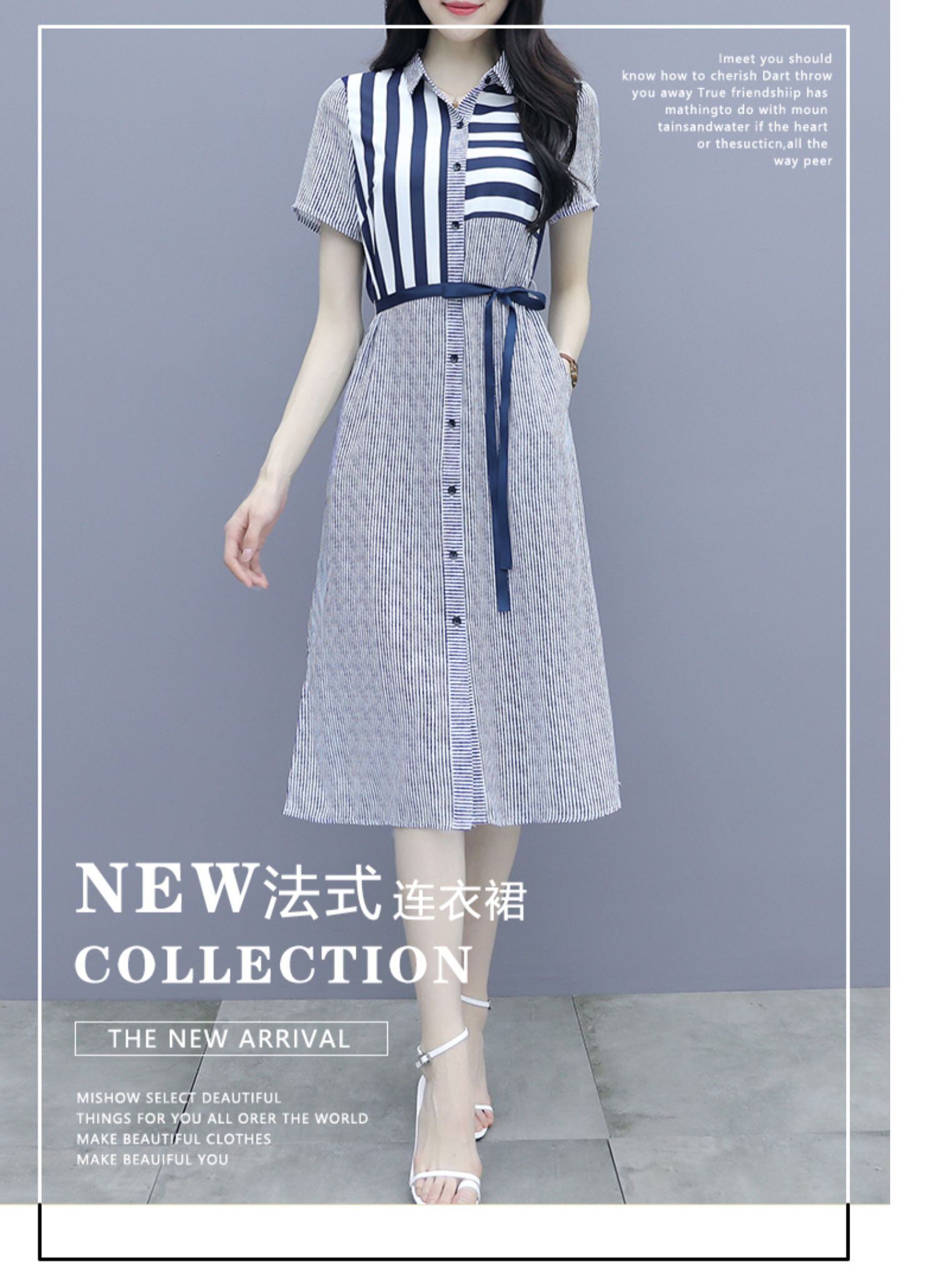 サマーハイウェストウェストシャツ ドレス ストライプ 大きめサイズ 夏物 ステッチ muto89369063564