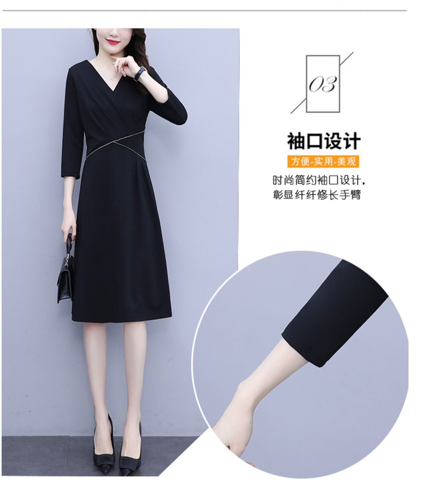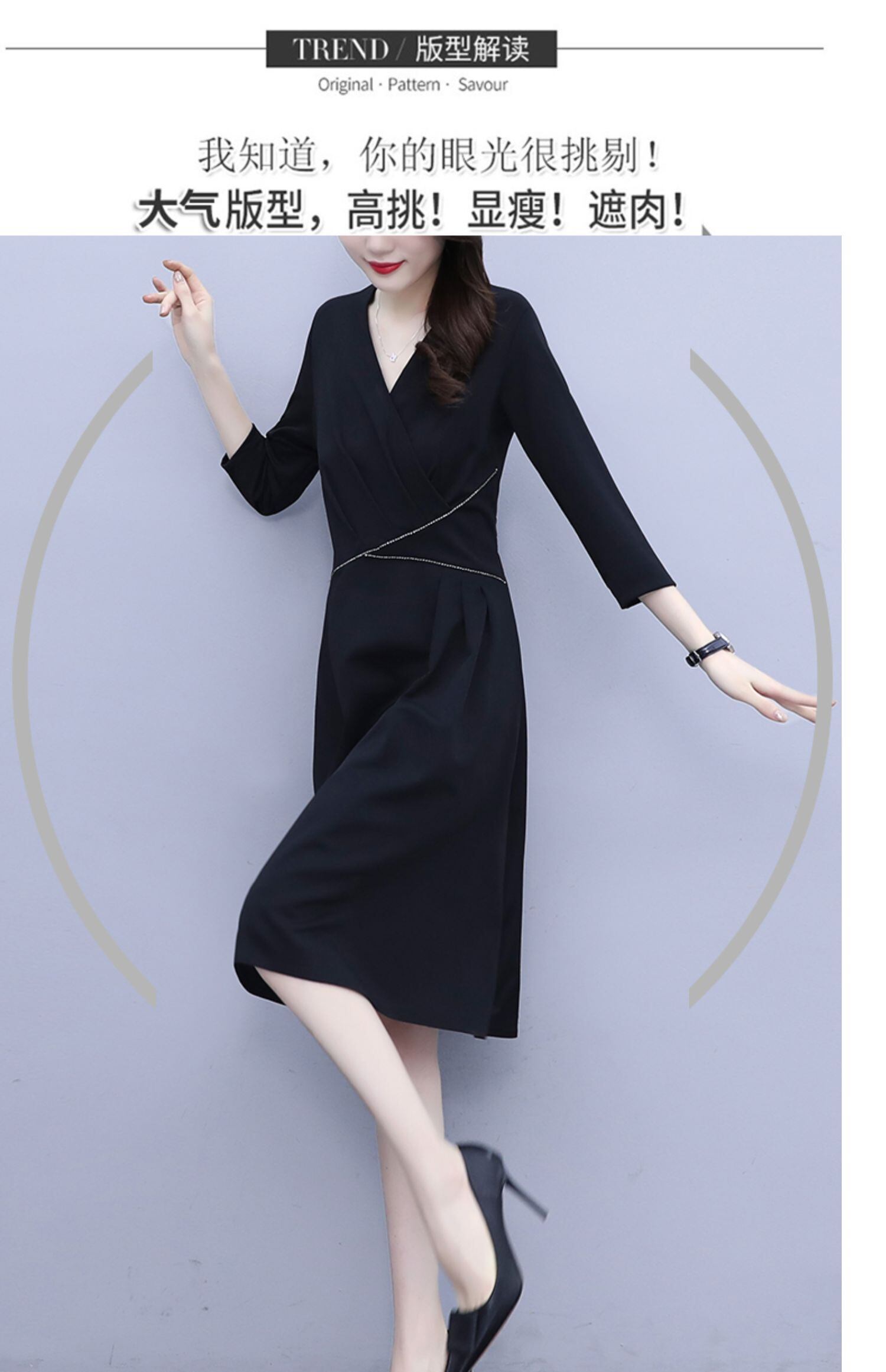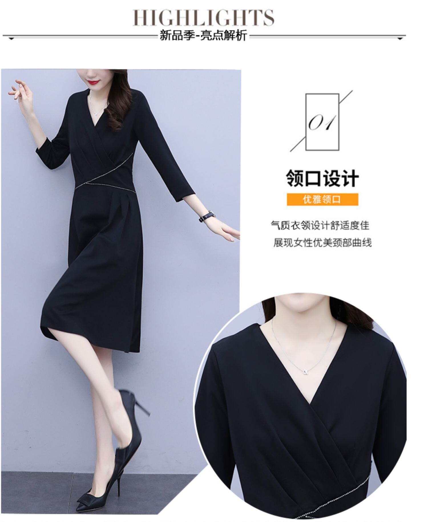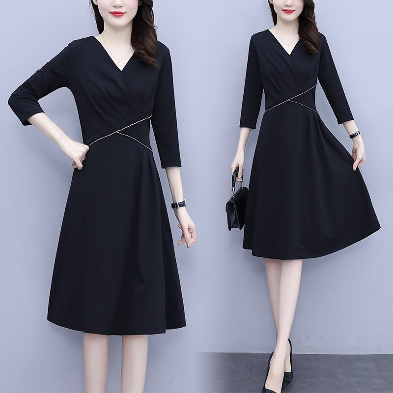 ドレス スプリングウェストVネック薄手ブラックスカート 大きめサイズ 春物 muto35404626057
