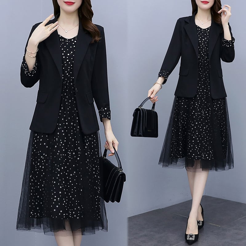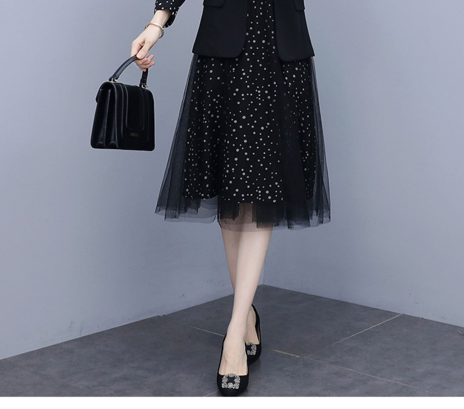 スカート スプリングブラックメッシュドレス 大きめサイズ 春物 muto95384424546