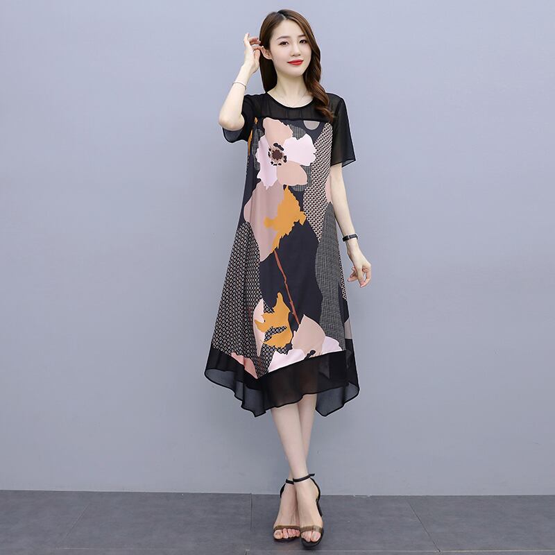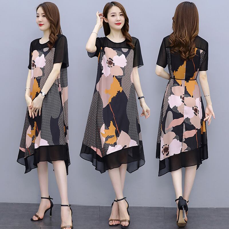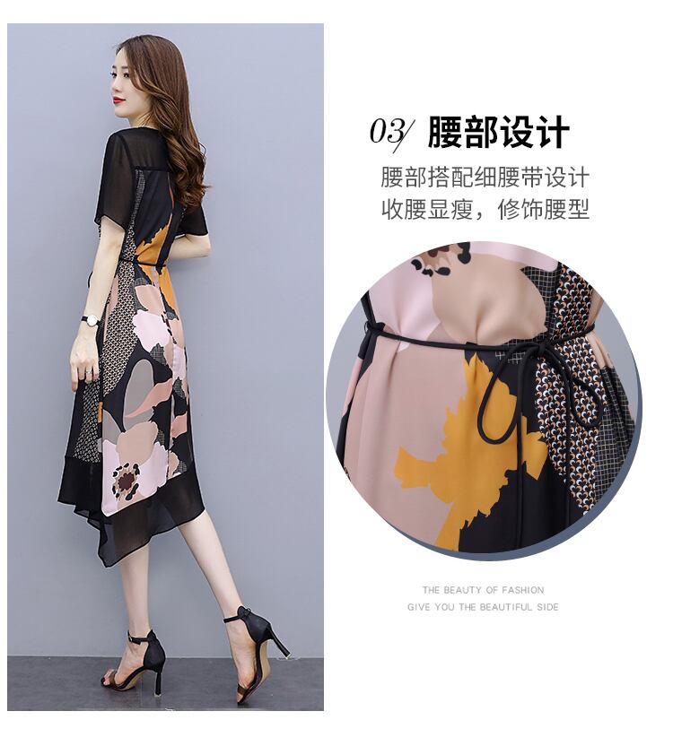 ドレス サマーウェストシフォンフローラルスカート 大きめサイズ 夏物 花柄 muto97654941354
