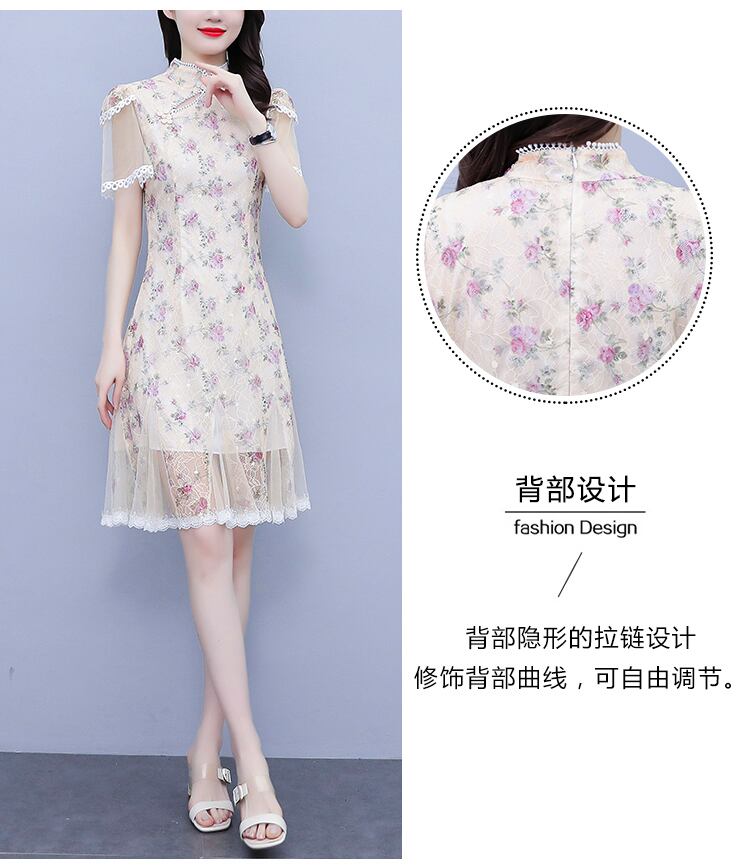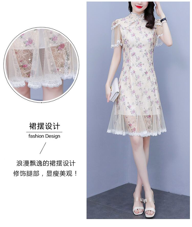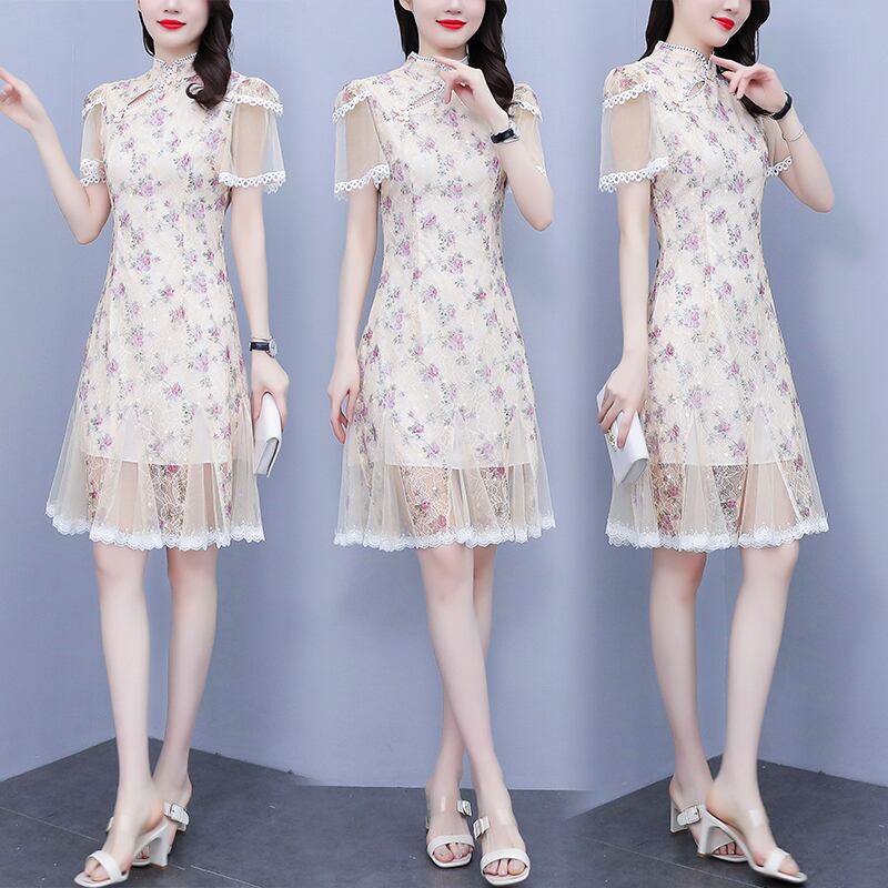 スタンダードスタイルレーススカート サマーメッシュドレス レトロ 大きめサイズ 夏物 ステッチ muto72229771362