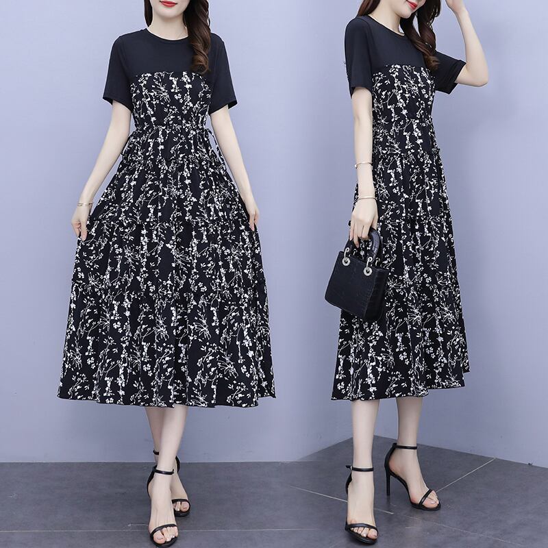 スリーブVネックドレス サマーハイウェストウェストスリム 大きめサイズ 夏物 muto29779984353