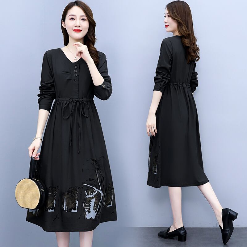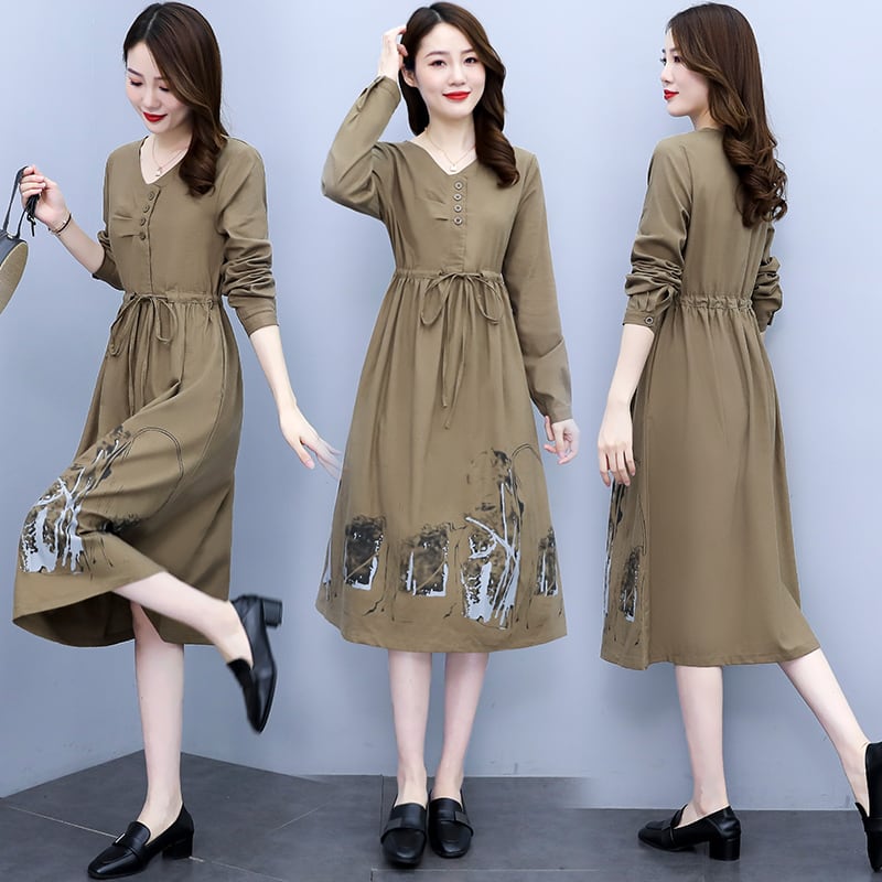ドレス スプリングオータムロングスカート コットン 大きめサイズ 春物 秋物 muto2284126649