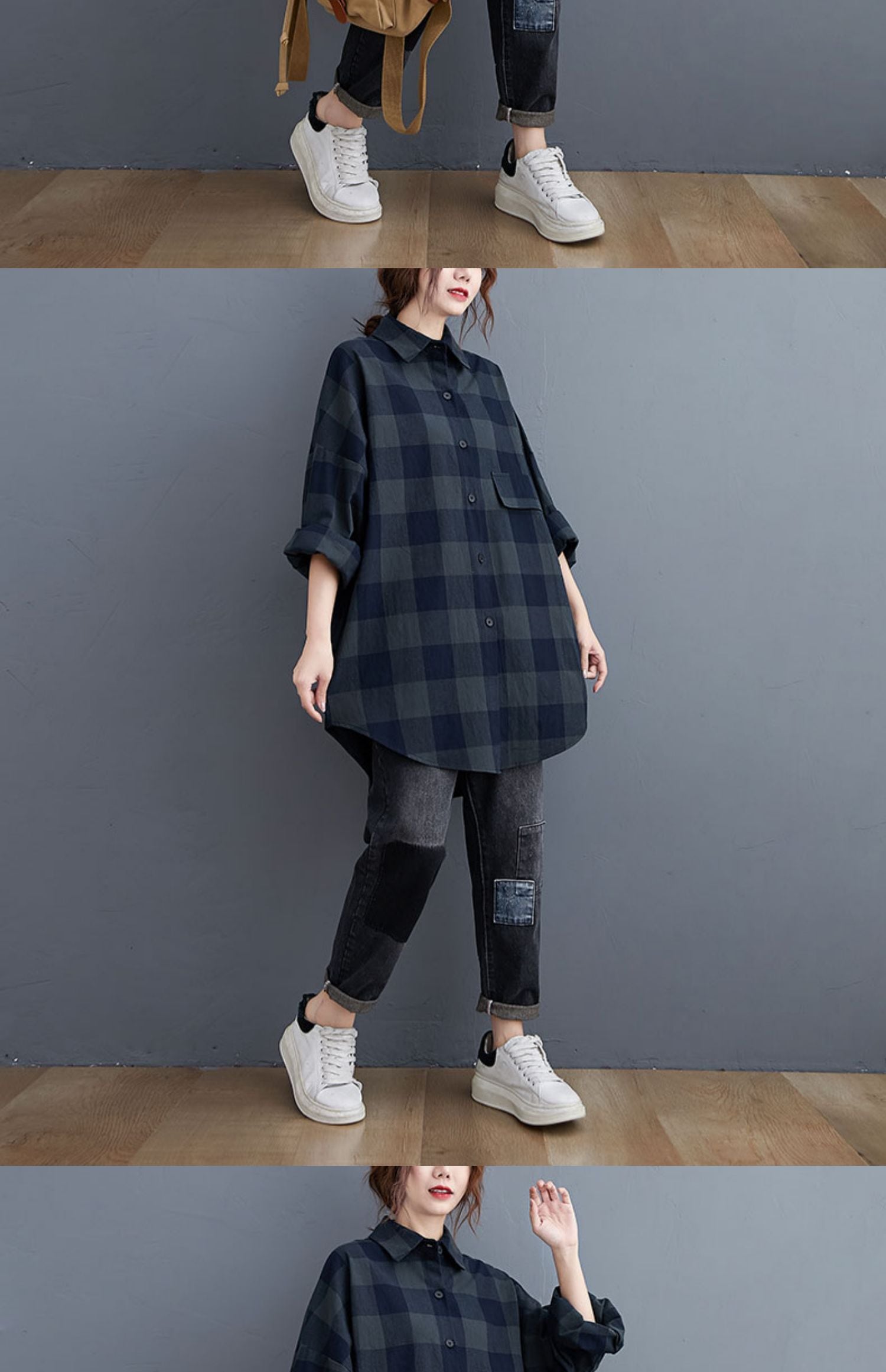 シャツスタイルスプリングオータムトップス 大きめサイズ 春物 秋物 ヨーロピアン muto87106833961