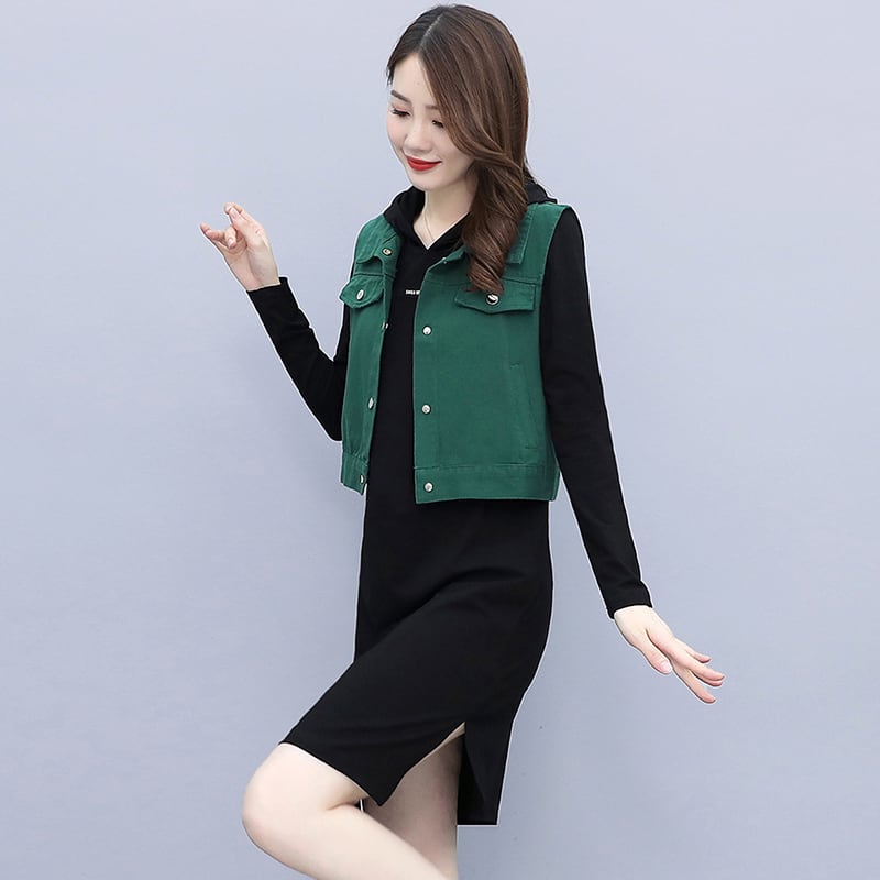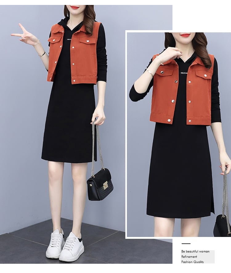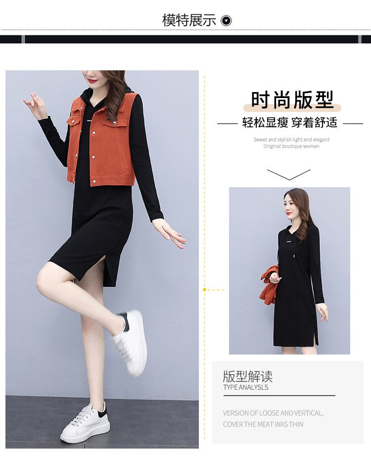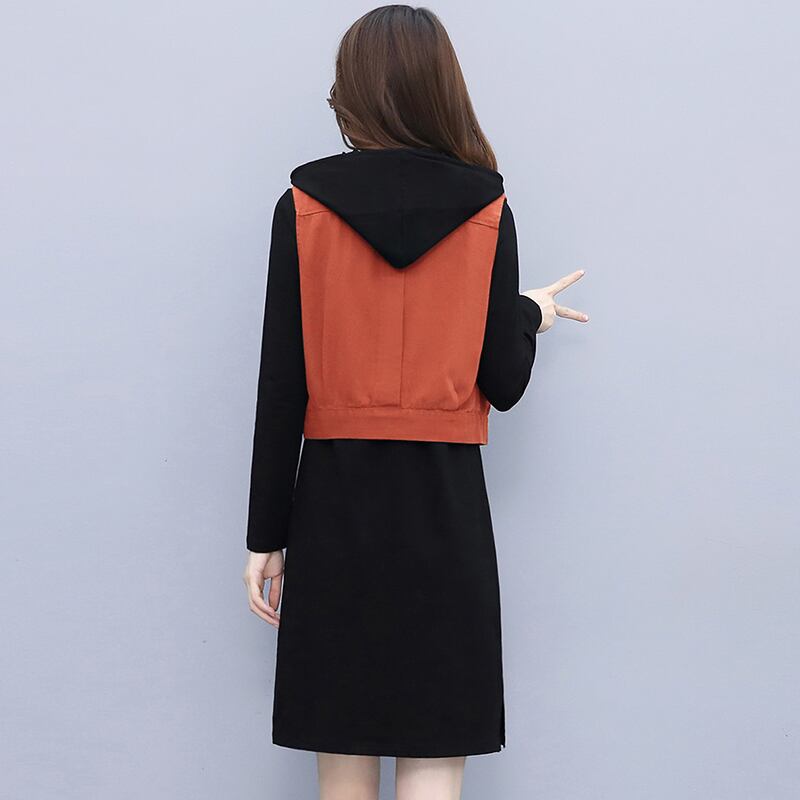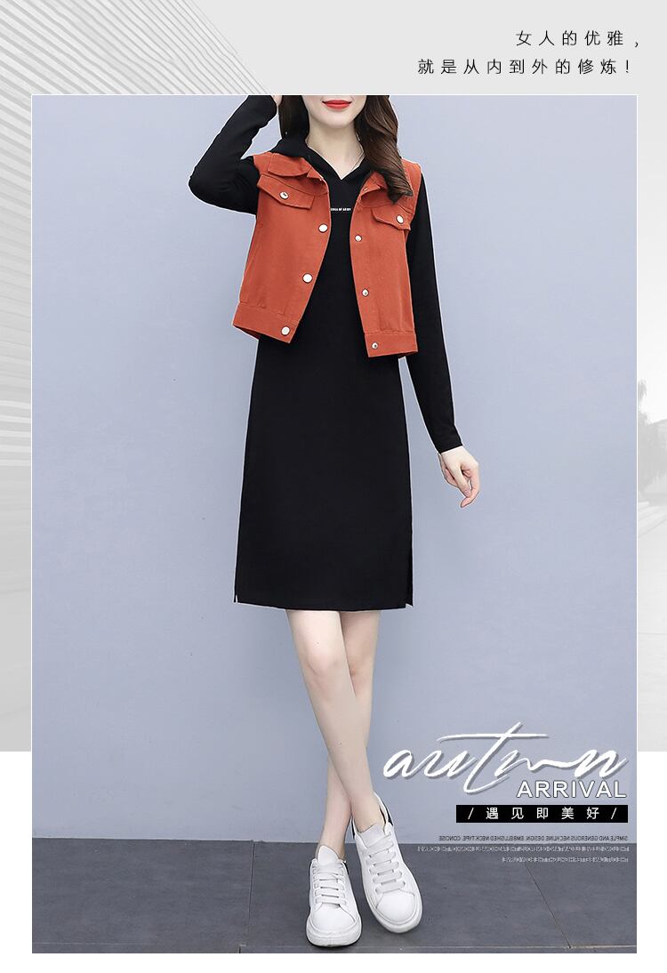 スカート オータムショートフードカジュアルドレス セット 大きめサイズ 秋物 muto79804639143