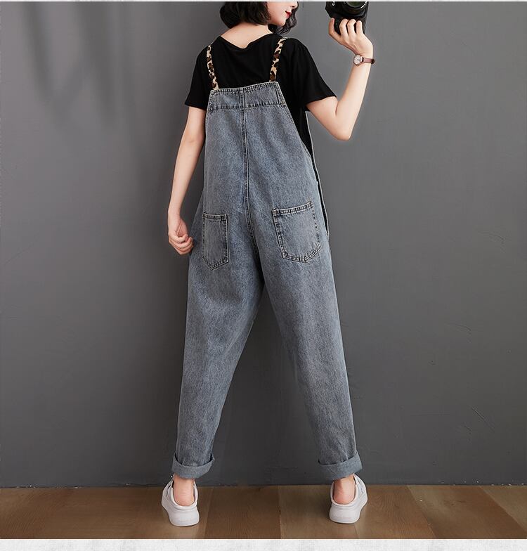 オーバーオール ルーズサマーレオパードプリント柄ストラップ 大きめサイズ 夏物 muto12304182953
