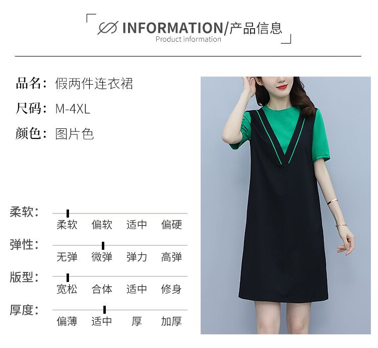 ドレス サマールーズ薄手ラウンドネックスカート 大きめサイズ 夏物 Oネック muto65267356643