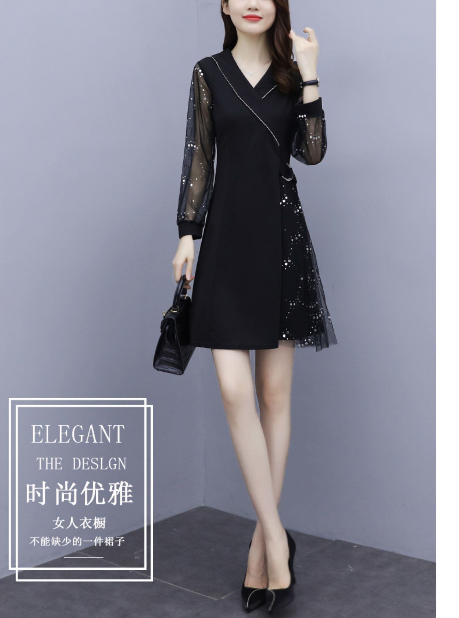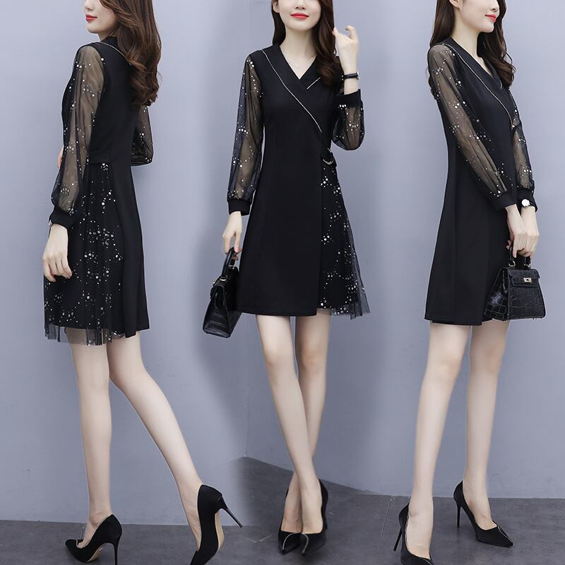 メッシュブラックドレス オータムルーズ 大きめサイズ 秋物 muto19661333765