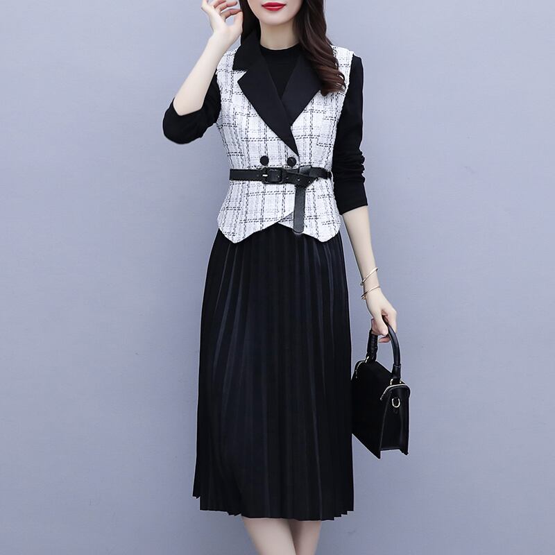 格子柄スカート スプリングオータムスタイルプリーツドレス セット 大きめサイズ 春物 秋物 muto26303488833