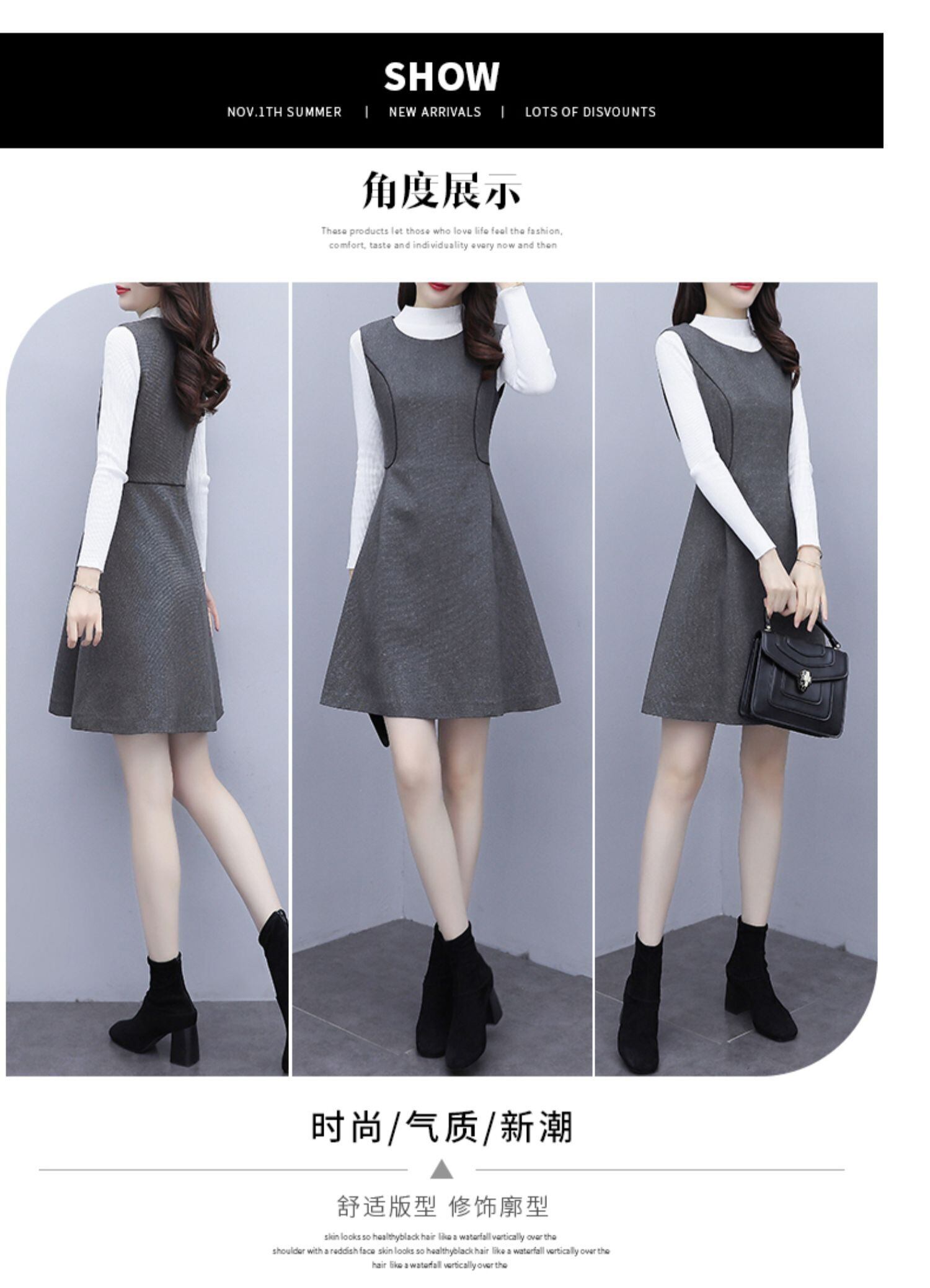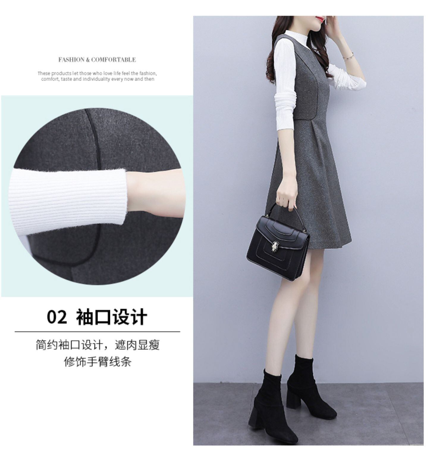 色:グレーSingleスカート/ブラックSweater,グレーSingleスカート/ホワイトSweater