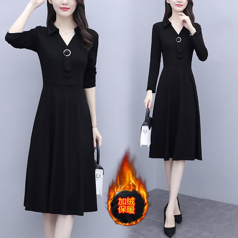 ベルベットウェストドレス ウィンターブラック 大きめサイズ 冬物 muto1133815765