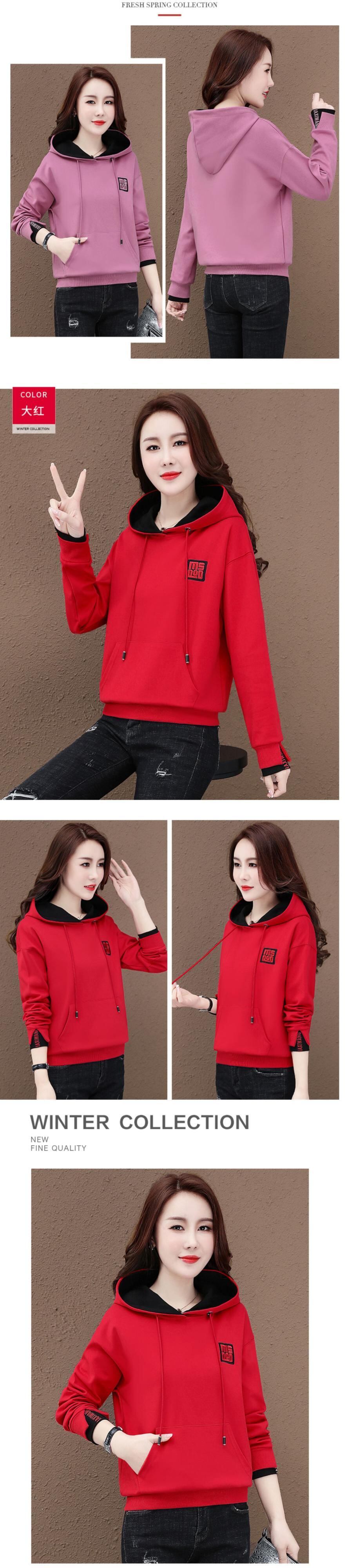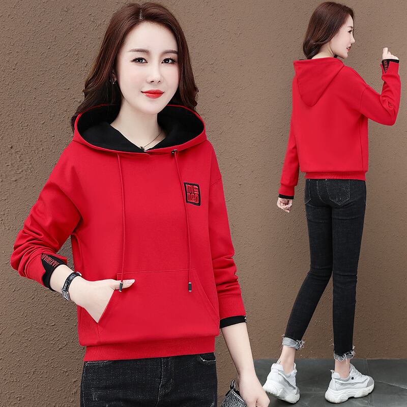 レッドセーター スプリングオータムルーズトップス 薄手フードジャケット 大きめサイズ 春物 秋物 muto20460658276