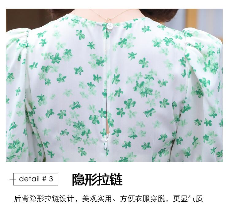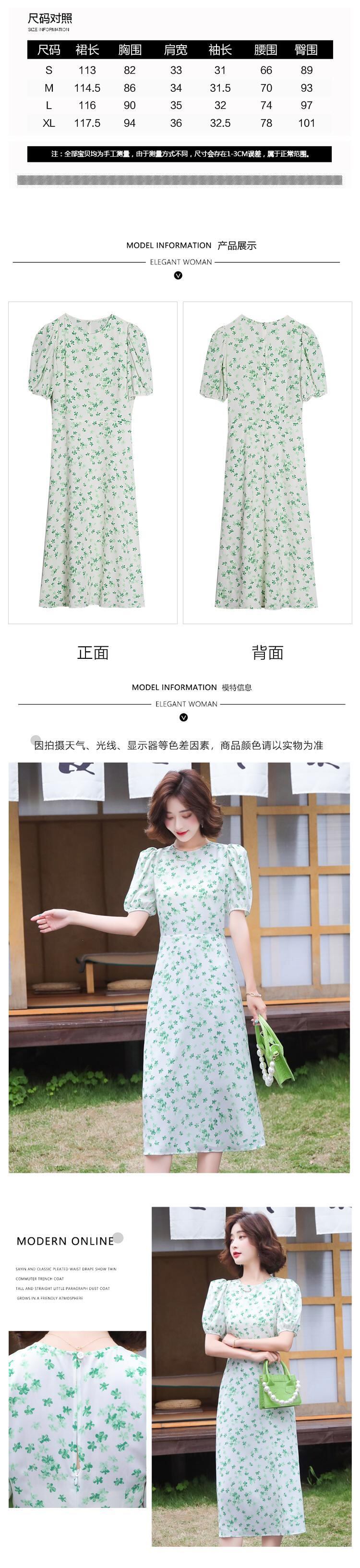 ウェスト薄手スリーブドレス サマーグリーンフローラルロングスカート 大きめサイズ 夏物 花柄 muto63699414793